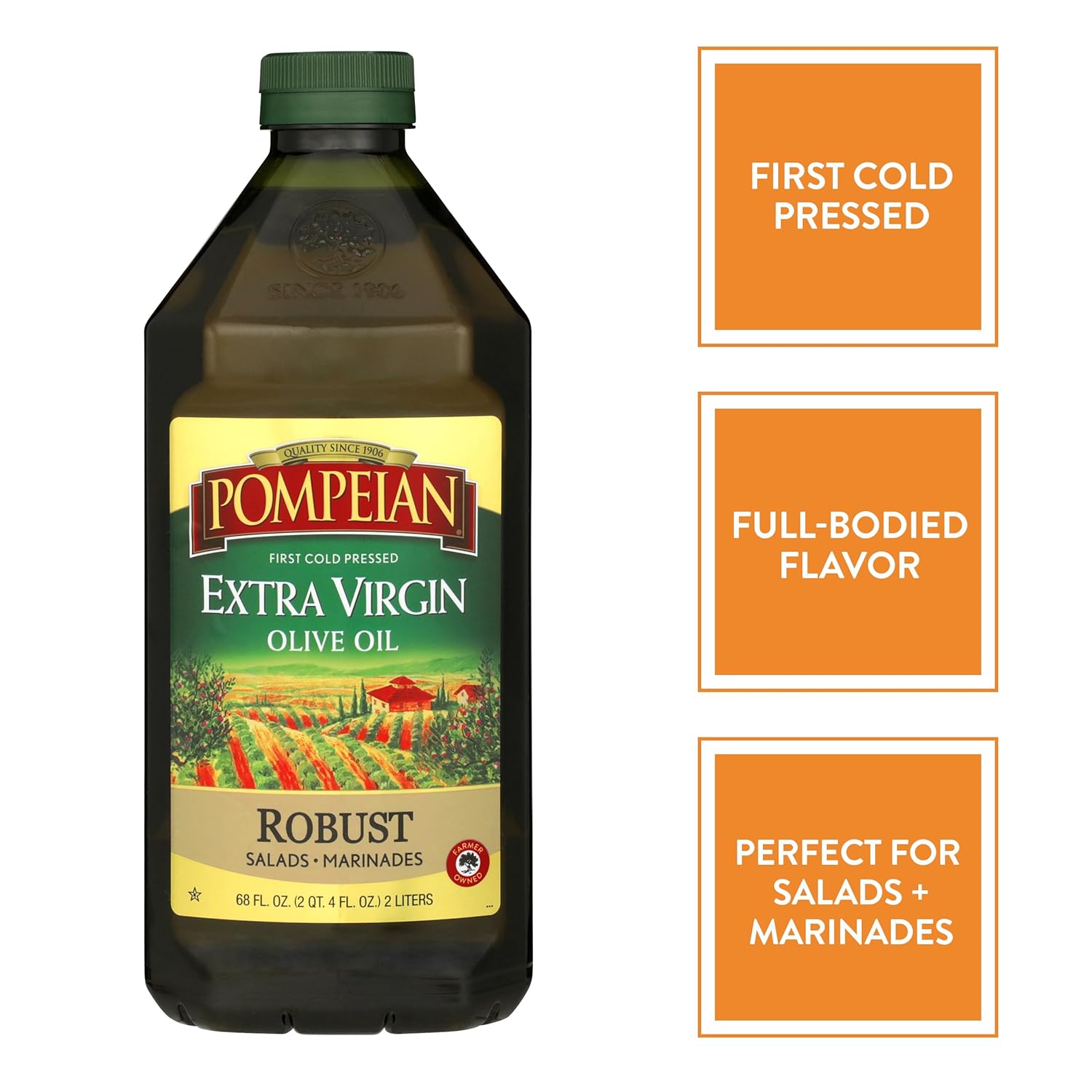 - AN EVOO FOR EVERY OCCASION: Pompeian Olive Oils are ideal for any meal that starts with a sauté and ends with a drizzle. This set includes one 68 Fl oz. bottle of each of the following flavors: Smooth EVOO, Robust EVOO