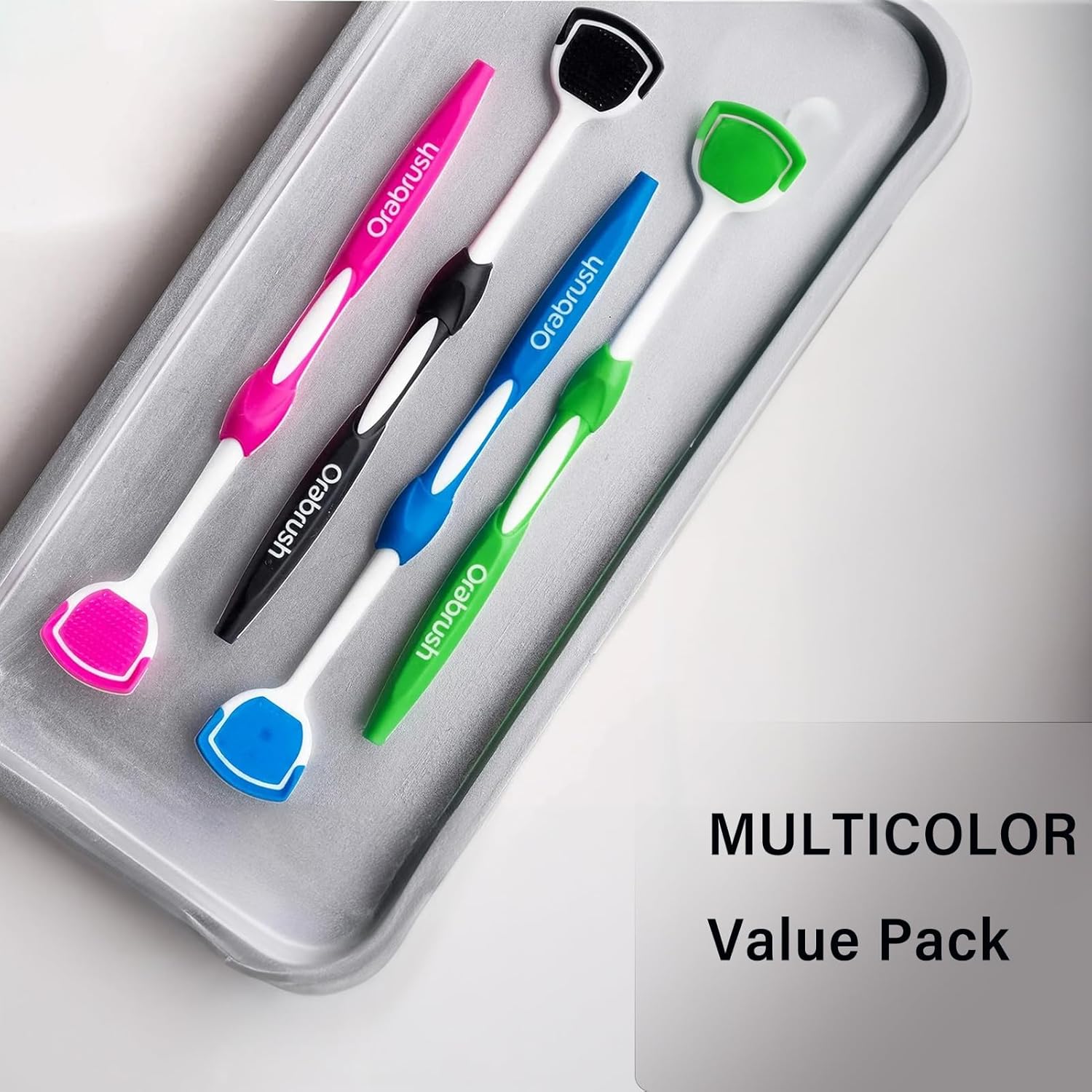 Soft Bristles Tongue Brush for orabrush - Gentle on Gag Reflex,Ergonomic Design, Freshens Breath for Improved Dental Hygiene,4 Tongue Scrapers - 4 pack