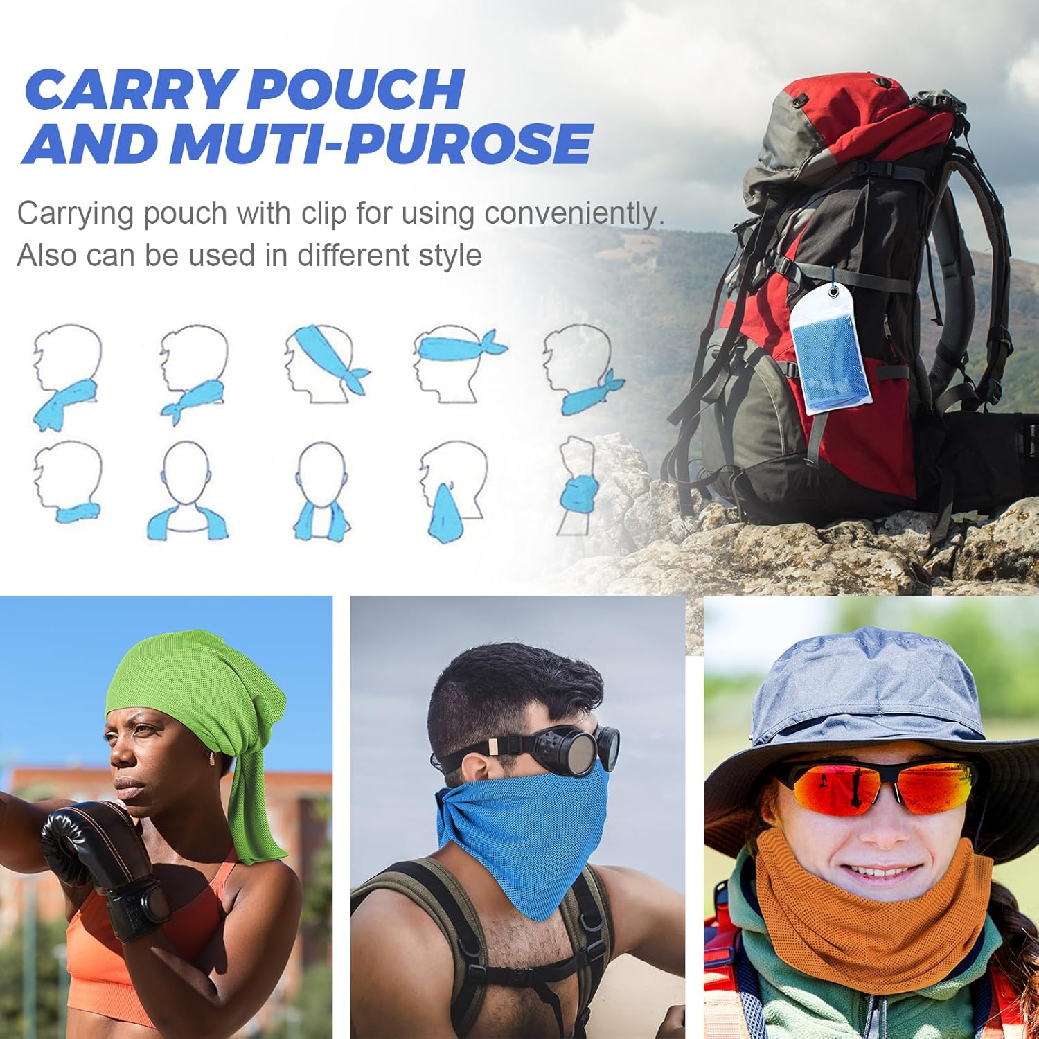 - Multi-purpose - Measuring Size: 40" x 12", Whether you're into hiking, jogging, yoga, barre, HIIT, cycling, Running or breaking a sweat in your living room, the cooling towel will fit be all you need to step up your fitness regime. Whether you rock it as a mask, headband, scarf, or bandana, it'll keep your head cool for hours.