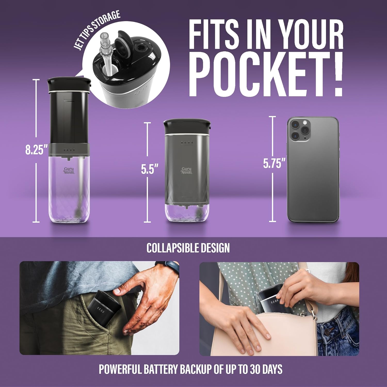 - FLOSS ON THE GO!: Blast away plaque & debris anywhere you go with our GuruNanda Compact Water Flosser! With its compact design that fits in your palm, you can carry it wherever you go