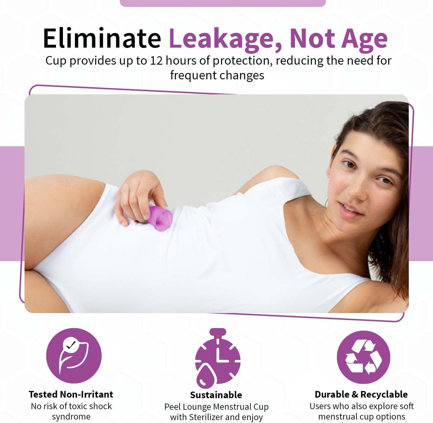 Angel's Peel Lounge Menstrual Cup for Women - 100% Medical-Grade Leak-Free Soft & Flexible Silicone Cup - 12 Hour Leak Protection Eco-Friendly & Reusable Period Cups for Women - Purple - Extra Small