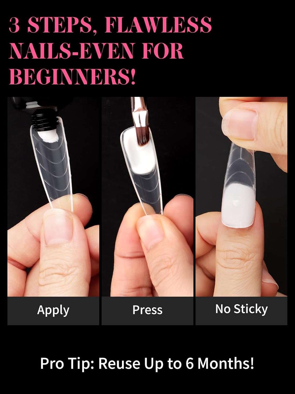 • 【Easy to Use】They are artificial nails forms, used as the nail mold. No glue needed, just brush the acrylic/structure gel into the forms and then place on the nail plate, hold on for a few seconds and cure it. Easy to shape, and pull away easily from the dried acrylic nails, leaving a very shiny nail.