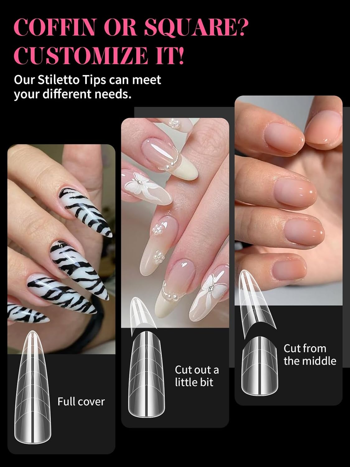 • 【Nail Form Mold with 12 Sizes】Stiletto clear dual forms for poly nail gel offers 12 different nail sizes , and each size of long nail tips is separated by a small grid, a total of 12 grids, so they're easy and convenient to choose the suitable size to meet your nail's need.