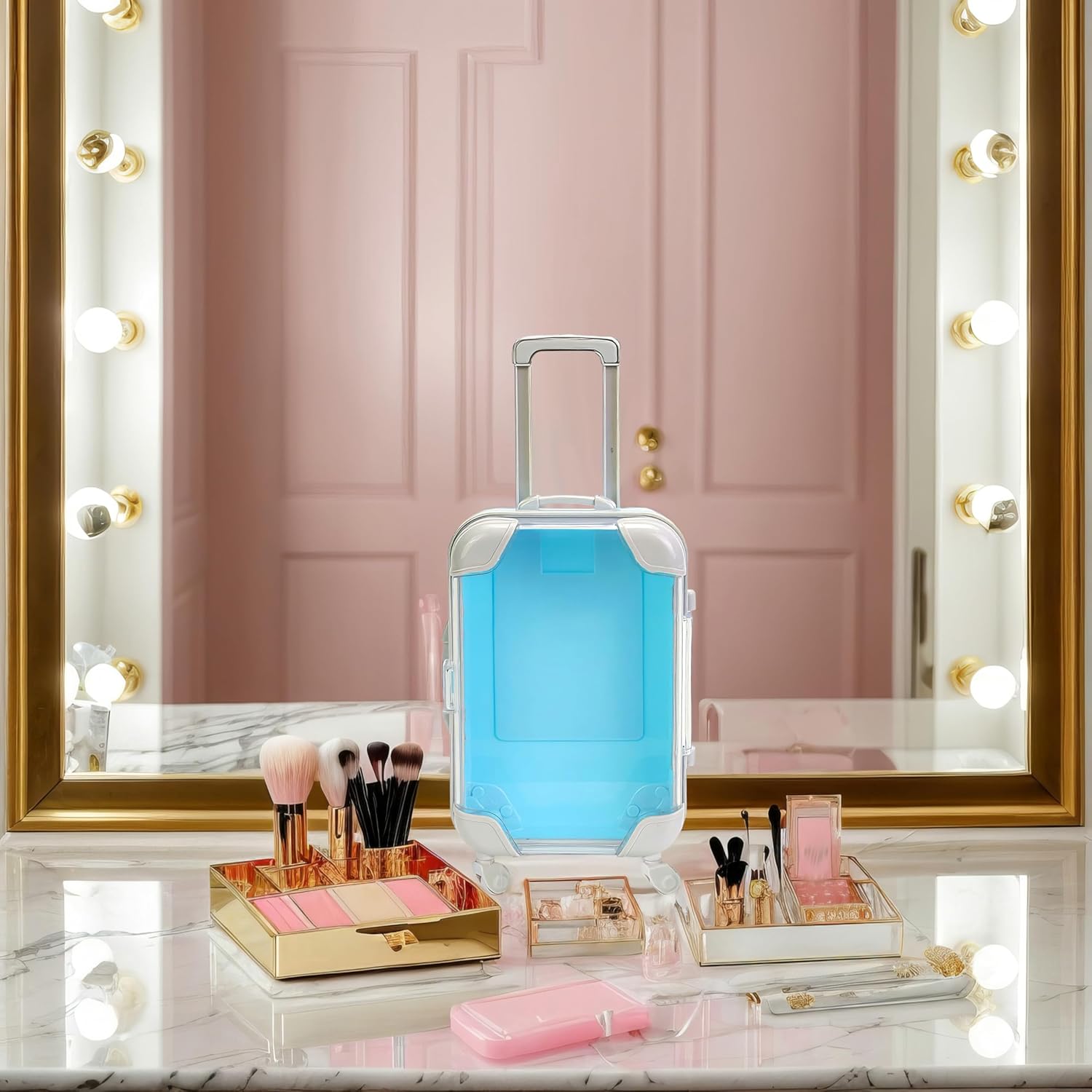 False Eyelash Storage Box, Portable Travel Organizer Mini Luggage False Eyelash Tray Makeup Tool (BLUE)