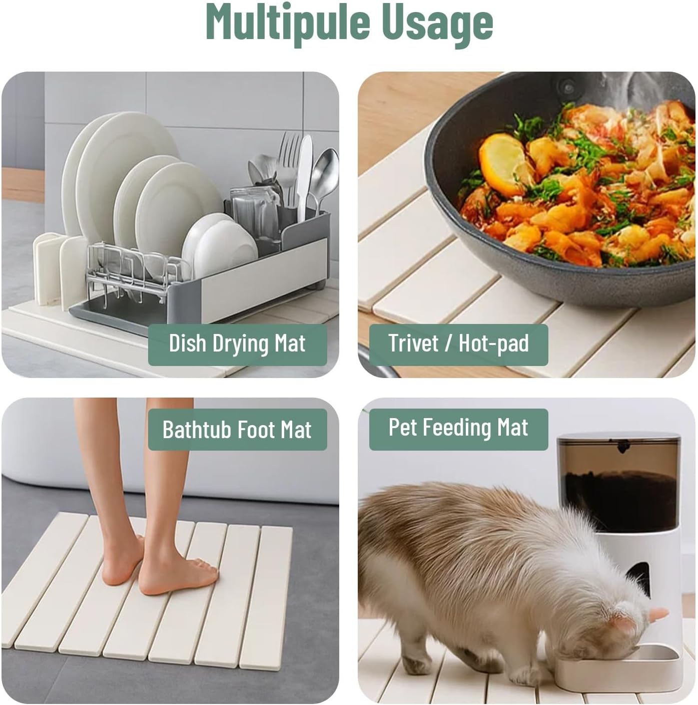 - Multi-Purpose Stone Mat – Use under a dish rack, for air-drying cups and bottles, as a soap tray, pet bowl mat, plant base, or bathroom drying mat. Available in Medium and Large sizes to fit every household.