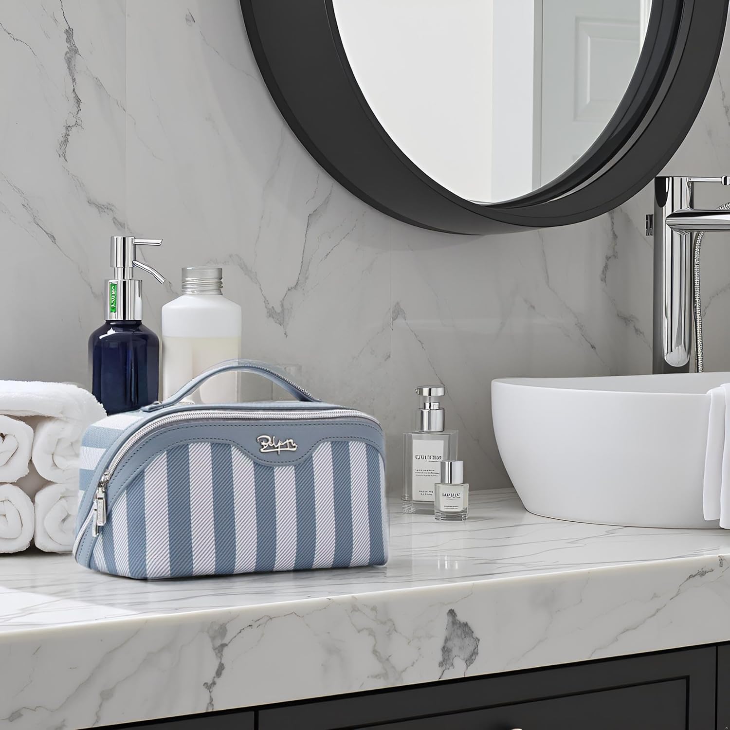 - Trendy Makeup Bag for Women: This make up bag is made of premium PU leather, soft to the touch, Waterproof & Durable & Stylish. Simple Stripes appearance design will bring you countless awesome compliments. BOYATU travel cosmetic bag is a great choice and ideal companion for you.