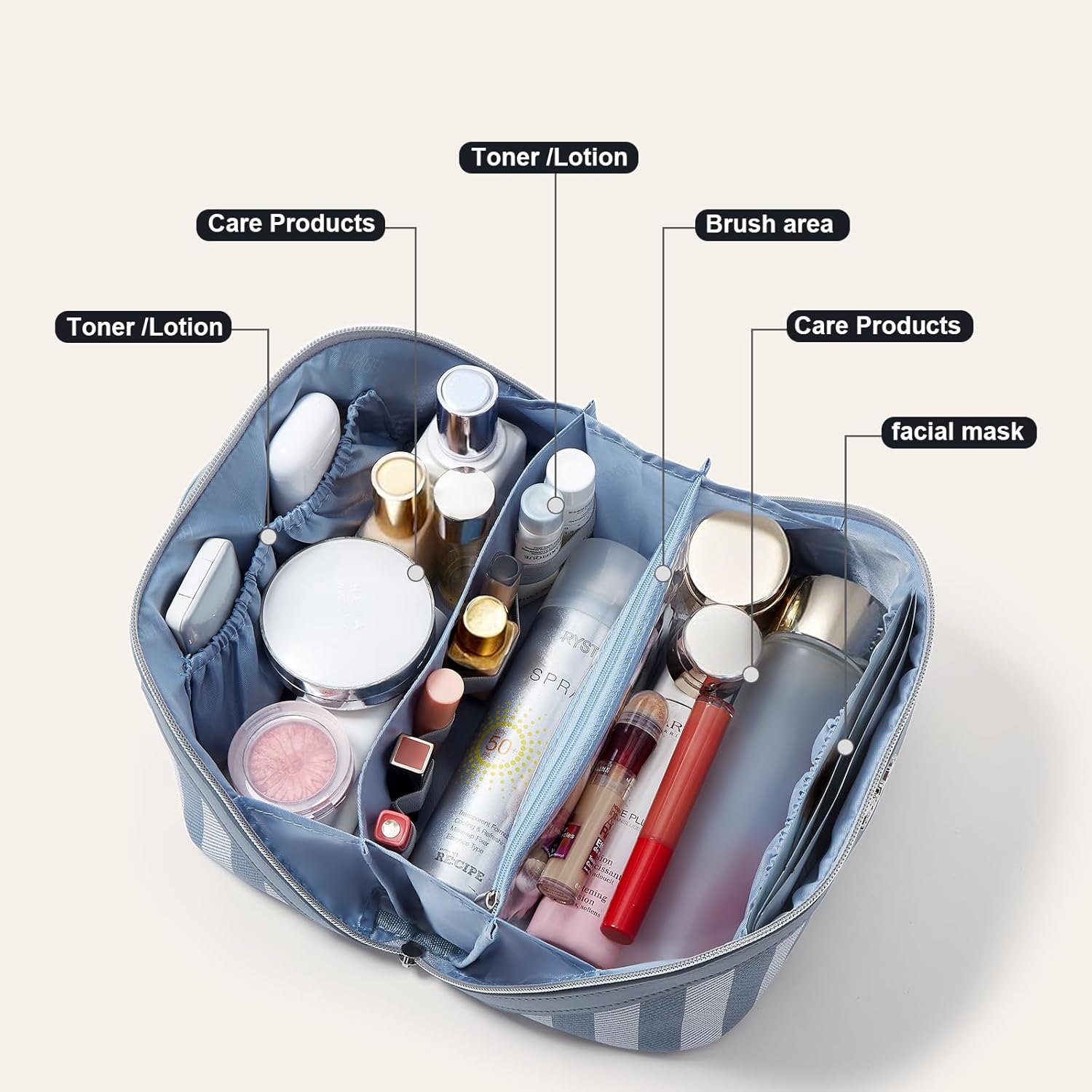 - Large Capacity Cosmetic Bag: This lightweight makeup organizer bag features a portable zipper opening. Measuring 9.25*5.1*5 inches, it fits 230ml toner bottles or larger. Weighing only 0.75 LB. It’s ideal for holding cosmetics and toiletries. Use it as a travel toiletry bag, makeup organizer, bathroom bag, or cosmetic case.