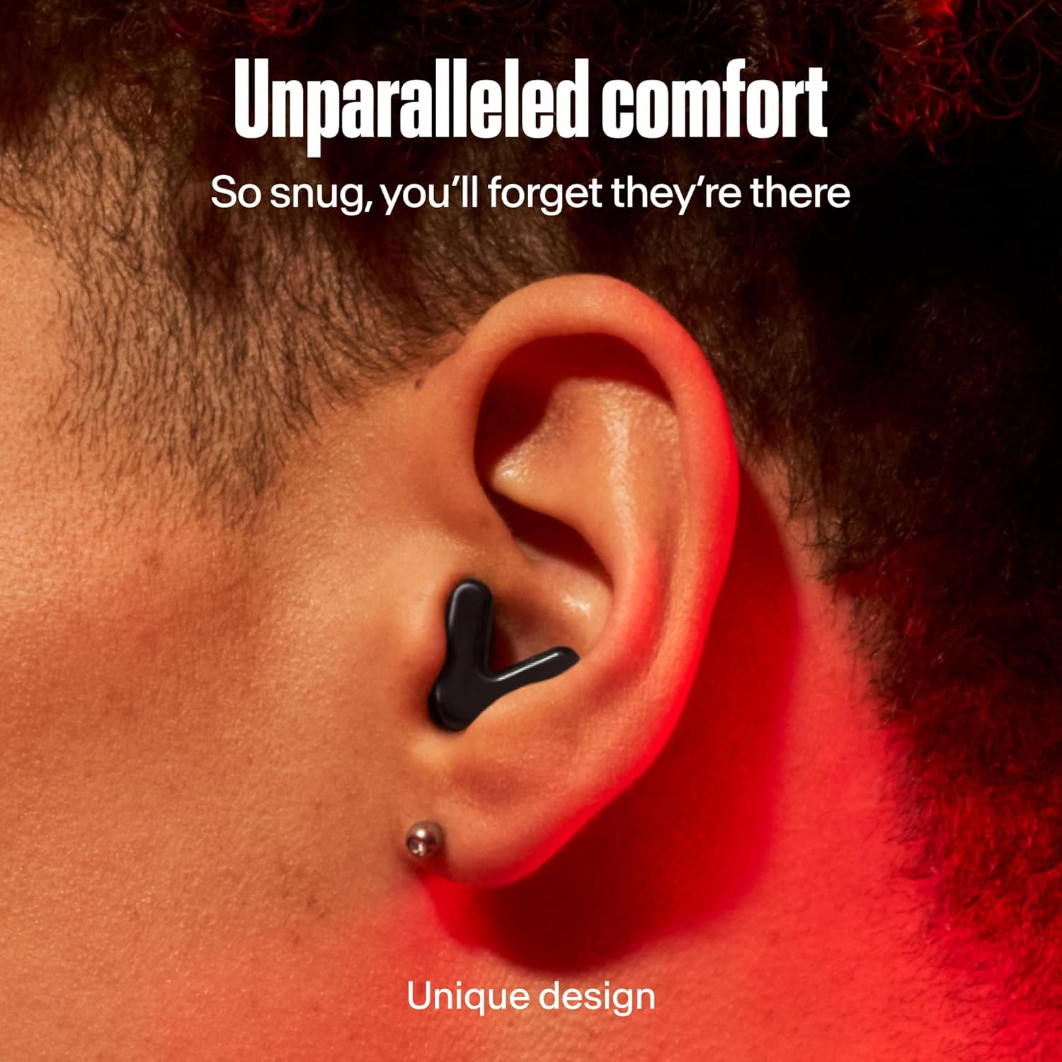- UNPARALLELED COMFORT – Soft oval tips in 4 sizes + ergonomic fit for all-day wear. Pressure-free and secure – they stay put through every set, even when the bass drops