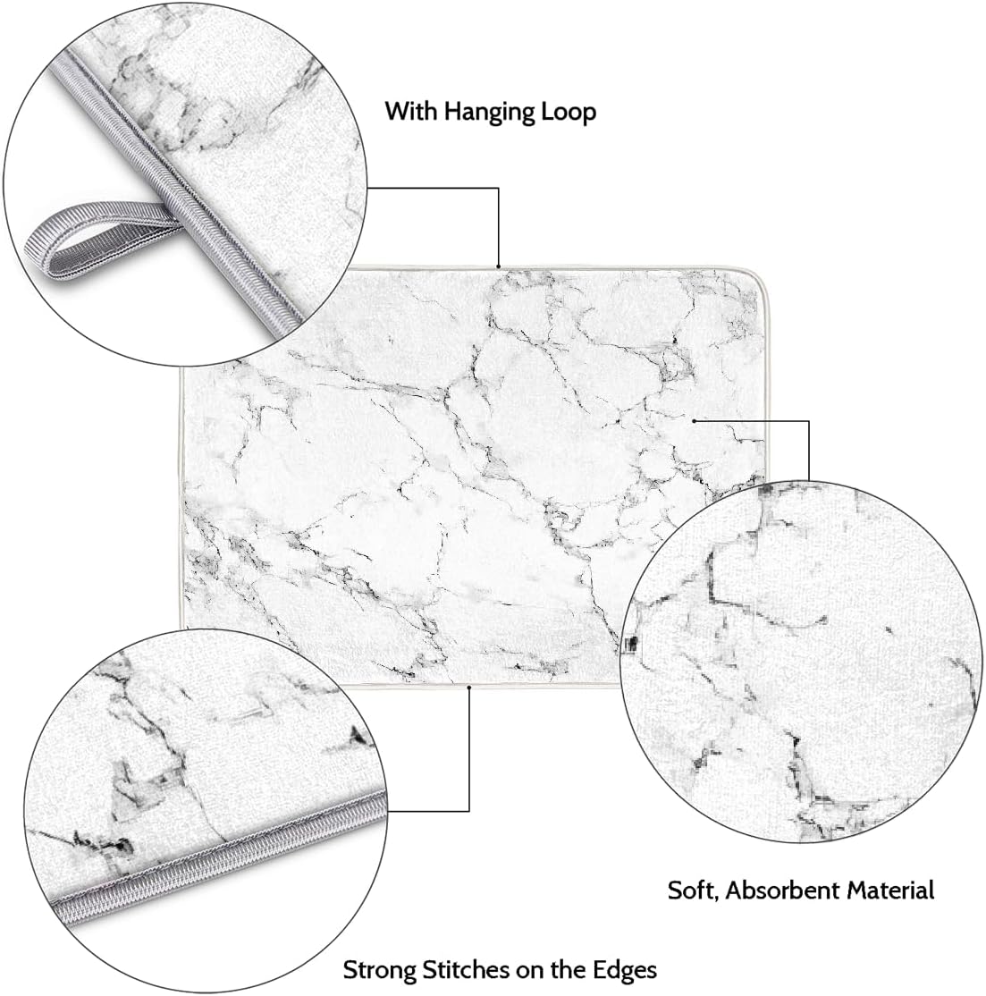 Dish Drying Mat White Gray Marble Texture Large Drying Mat for Kitchen Counter 18x24in Absorbent Dish Drainer Rack Pad, Heat Resistant Coffee Bar Mats Countertop Protector