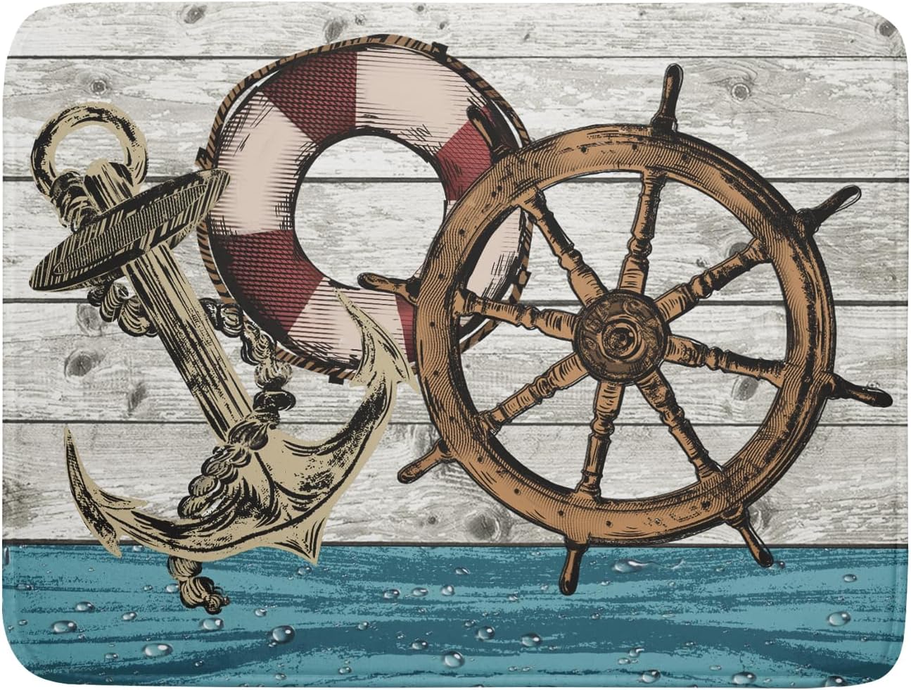 Nautical Anchor Dish Drying Mat 18x24 inch Coastal Boat Fast Dry Microfiber Reversible Dish Drainer Pad Kitchen Countertop Tabletop Decor