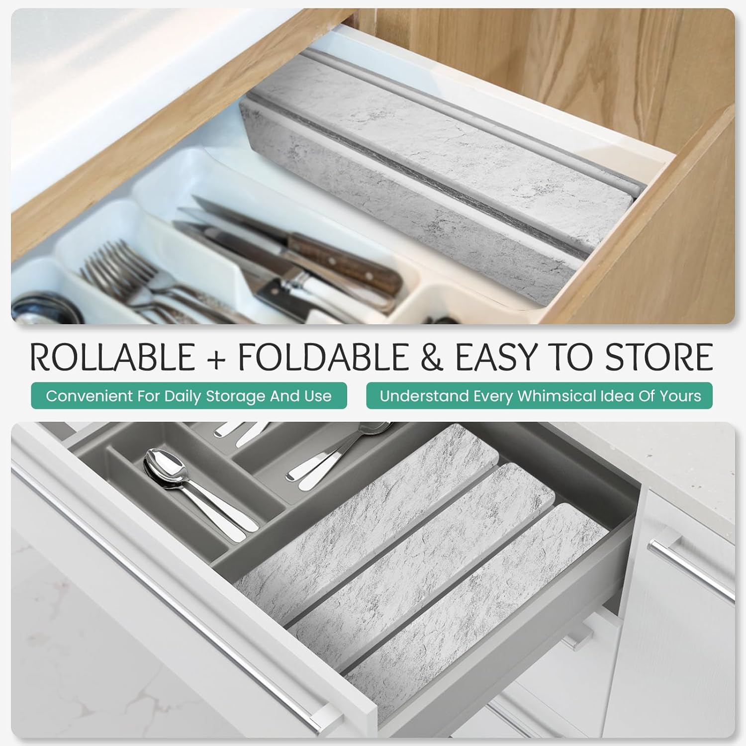 - 【Foldable&Rollable Design】:The dish mats for drying dishes what we designed is foldable and rollable,efficiently helping you achieve the idea of convenient storage.When not in use,can be folded or rolled up and placed in kitchen drawers,cabinets,clothing drawers etc;when during use,its large size provides spacious space for the tableware,cookware,cups etc.It comes with PVC anti slip pad that can be used together to achieve double-sided anti slip and double safety.Our kitchen mat to enables your kitchen countertops to be clean and organized.