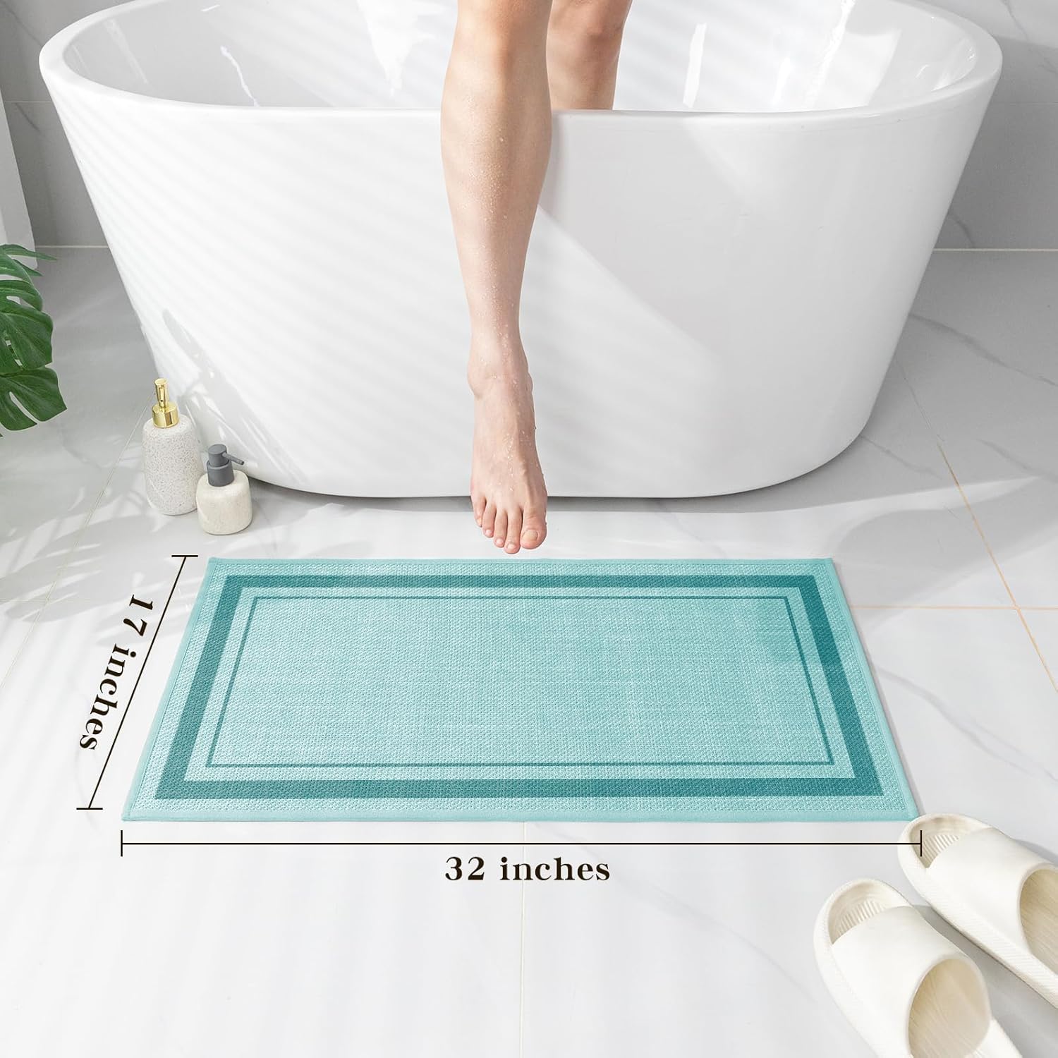 chakme Bathroom Rugs Mat 24x17, Ultra Thin Non Slip Bath Mat Small Quick Dry Absorbent Bath Mat for Bathroom Floor, (Light Blue, 24"x17")