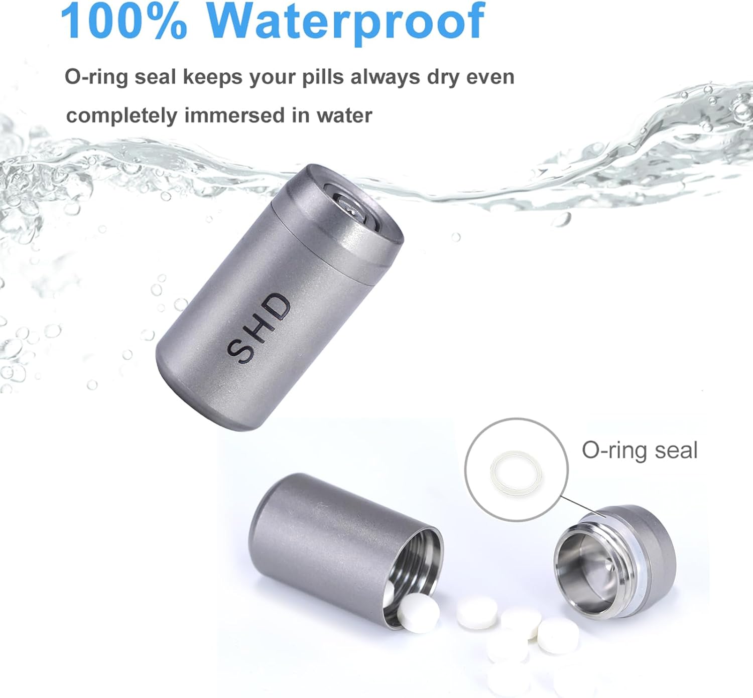 SHD Pill Holder Keychain,Titanium Waterproof Mini Pill Case Container,Portable Small Pill Box for Outdoor Travel Camping