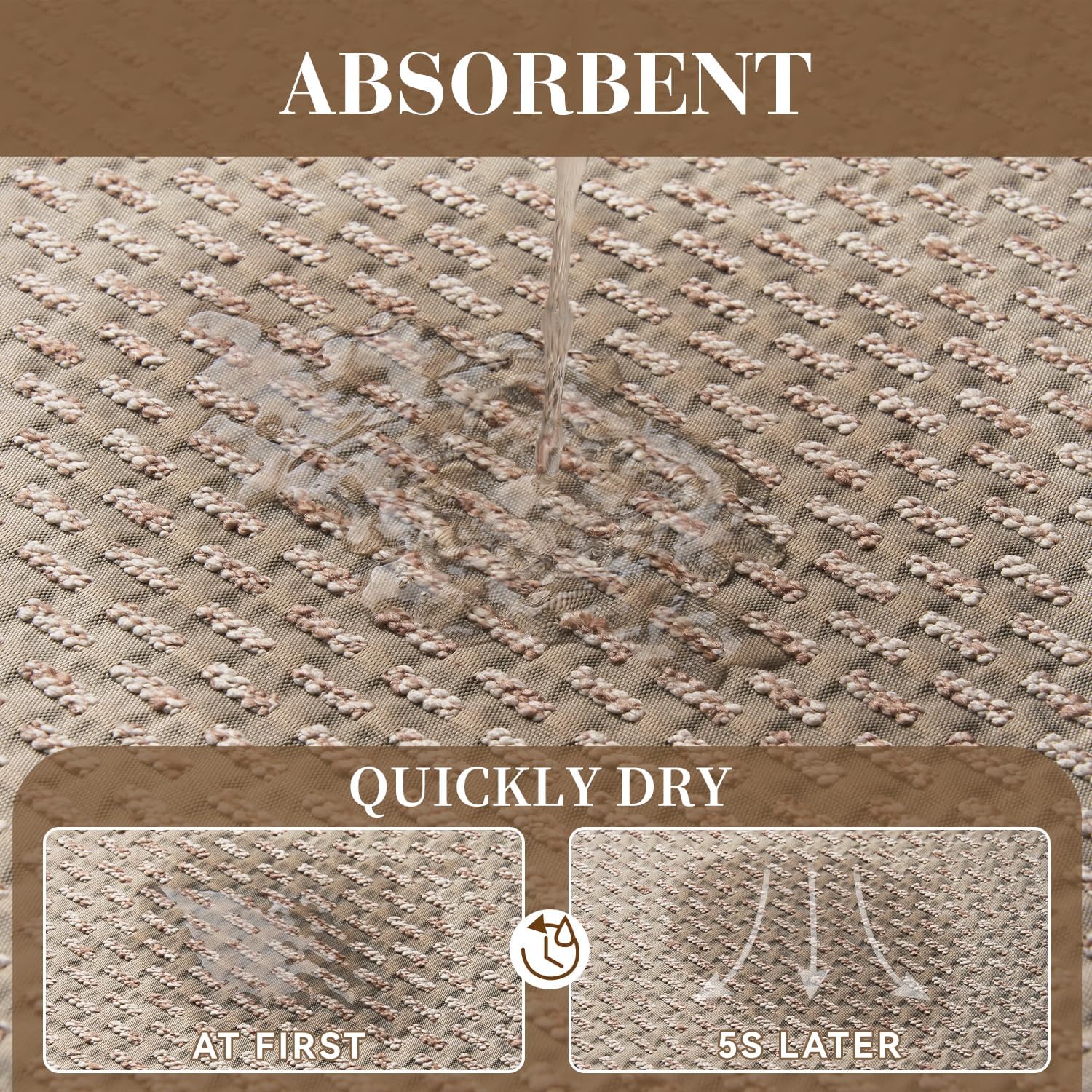 - Super Absorbent: Crafted with high-quality absorbent polyester, these bath mats for bathroom can quickly lock the small water droplets from wet feet after a shower. Absorbent bath mat will effectively keep the bathroom floor dry and clean, reducing the risk of slips and water stains.