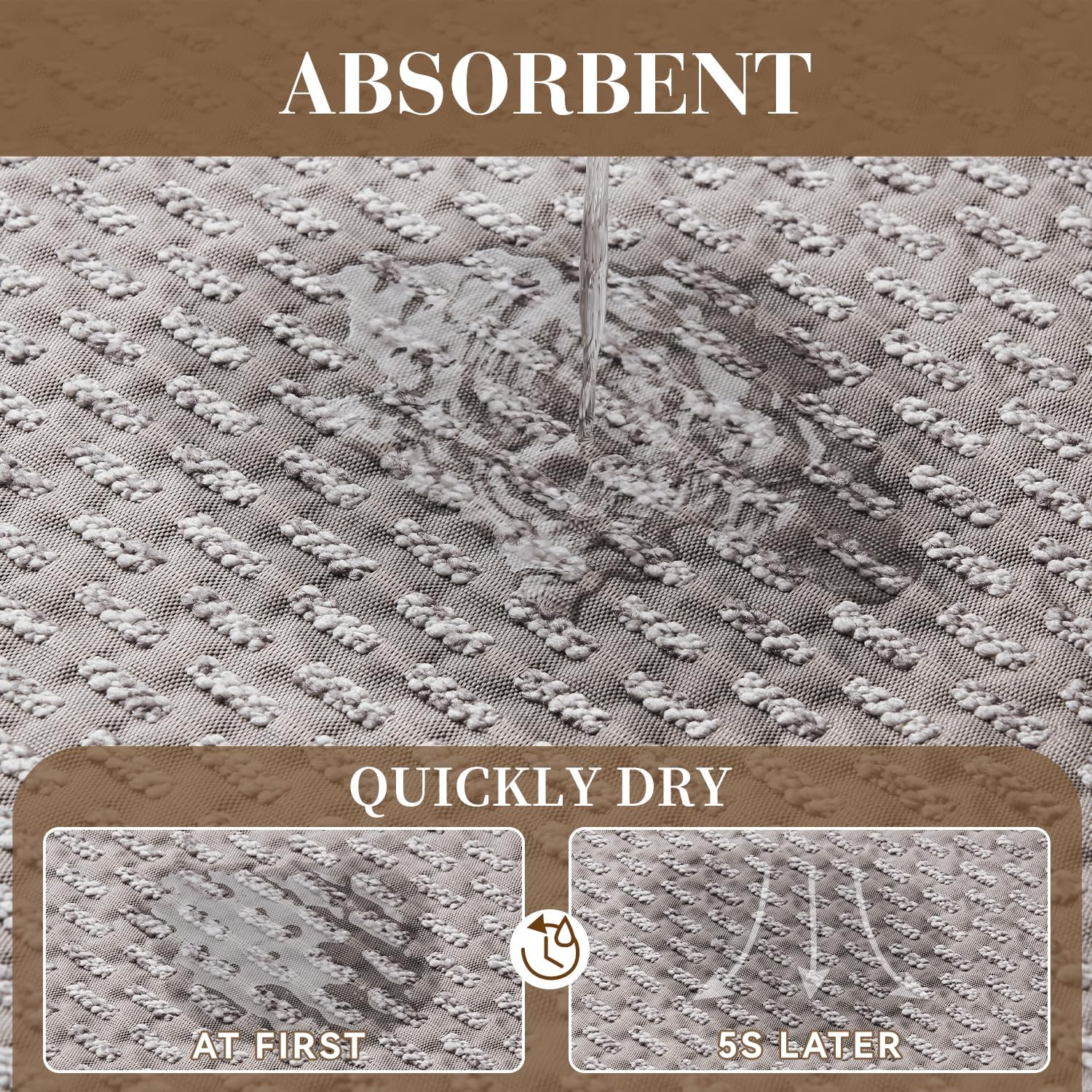 - Super Absorbent: Crafted with high-quality absorbent polyester, these bath mats for bathroom can quickly lock the small water droplets from wet feet after a shower. Absorbent bath mat will effectively keep the bathroom floor dry and clean, reducing the risk of slips and water stains.