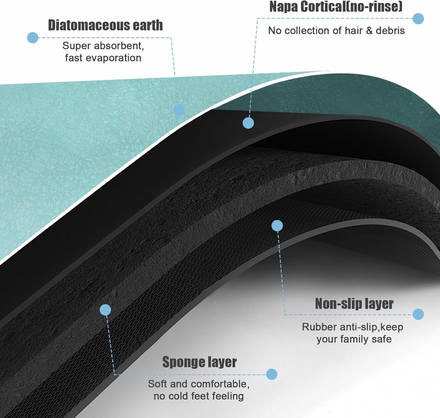 Diatomaceous Earth Bath mat Bathroom Rugs Super Absorbent Quick Dry Non Slip Bath Mat Thin Bathroom Floor Mats Fit Under Door-Shower Rug for in Front of Bathtub Shower, Green, 23.6"x47.2"