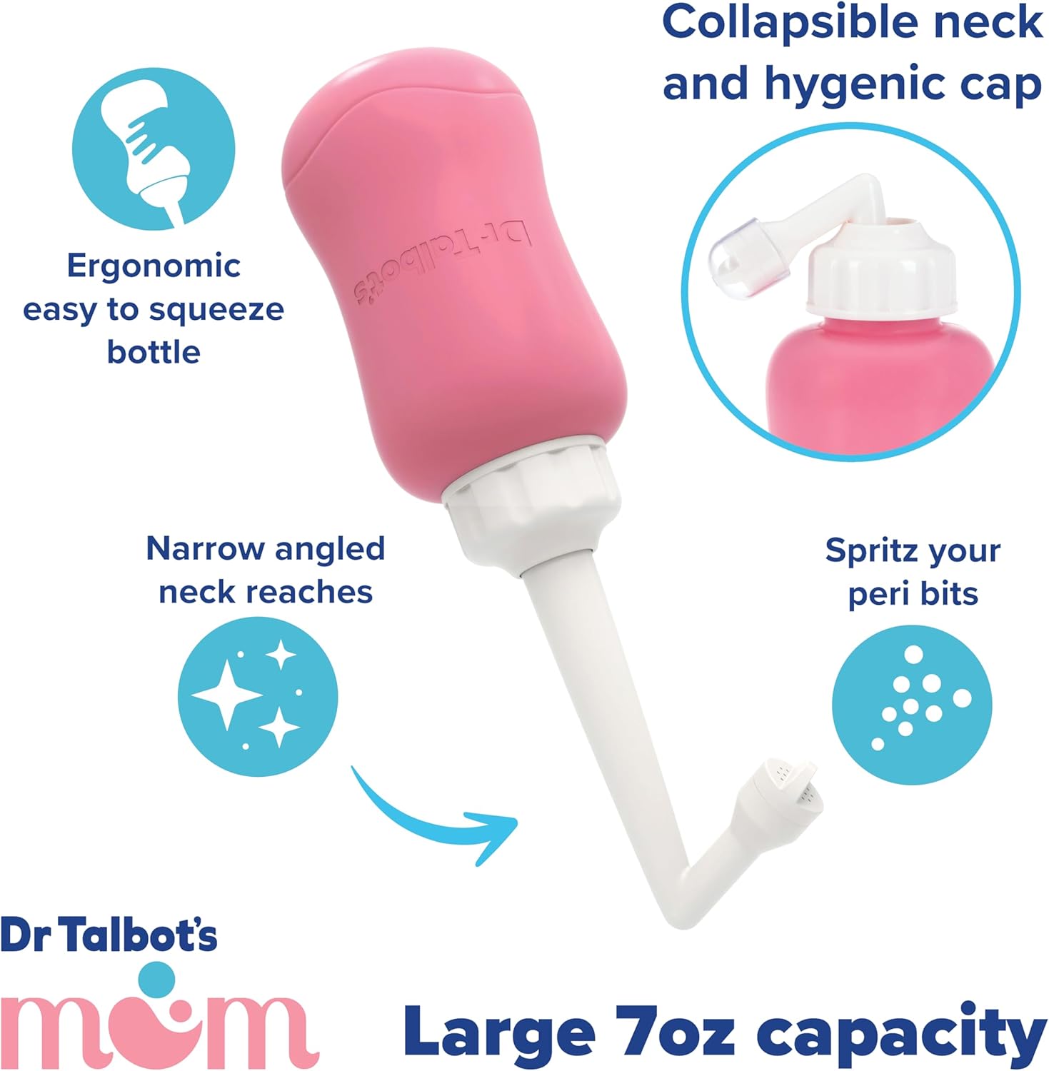 - EFFECTIVE POSTPARTUM CARE: Dr. Talbot's Mom Postpartum Peri Bottle is a safe, gentle way to cleanse the perineal area after birth; Perfect addition to postpartum essentials and C section recovery must haves for moms with limited mobility