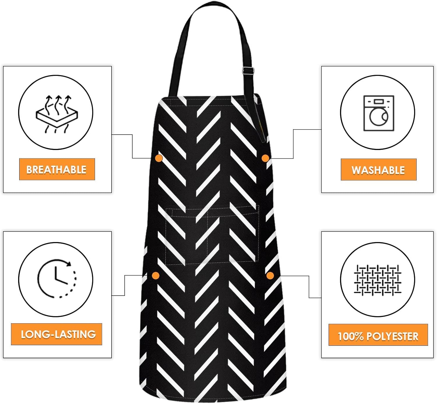 Britimes 2 Pack Aprons, Boho Stripe Adjustable Bib Aprons with 2 Pockets for Women Men Couple Lovers Chef Home Kitchen Cooking Baking Gardening Black and White Apron 32x28 Inches