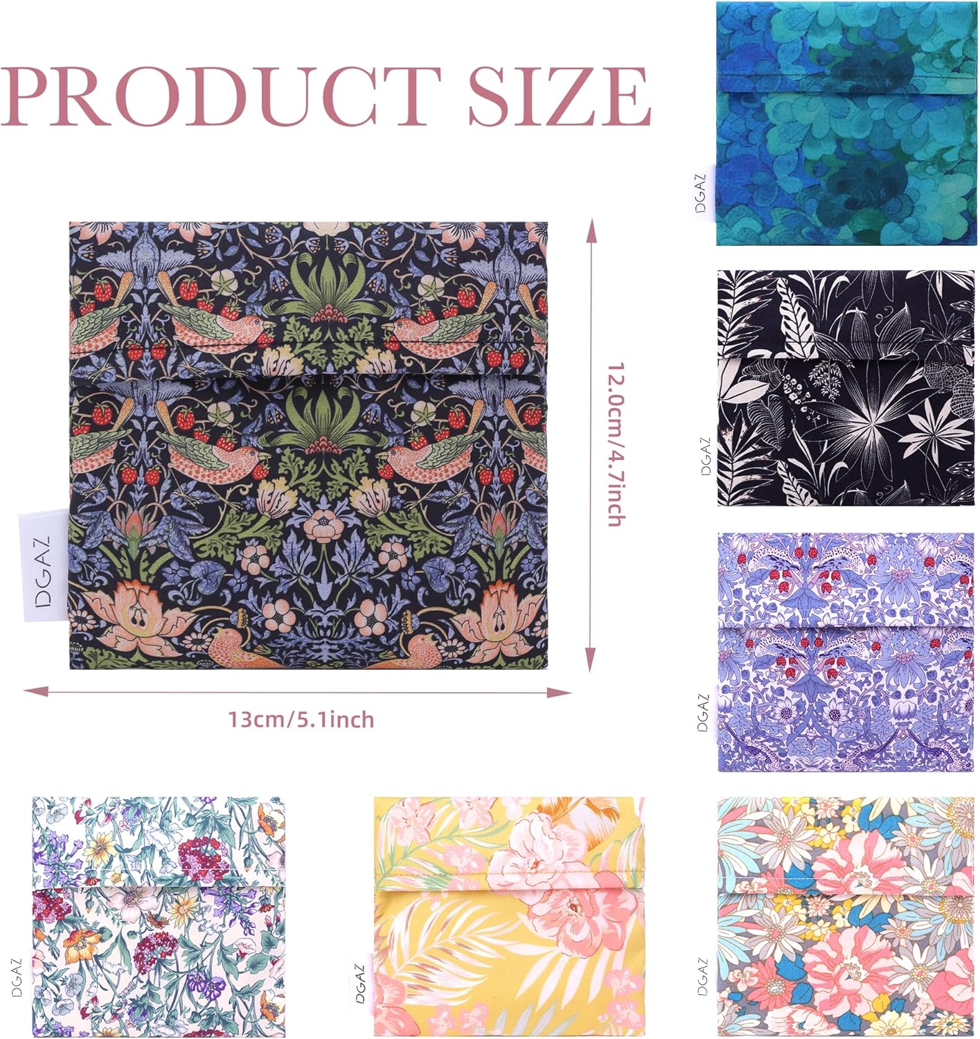 - 💕 【MEET MULTIPLE OCCASIONS】-Pad storage pouch is compact in size: 5.1 x 4.7 inches. Great for storing sanitary napkins, tampons with applicators, panty liners, small personal cleansing kits, reusable pads and more. Nice menstrual bag. Convenient for office, business trips, shopping and traveling.