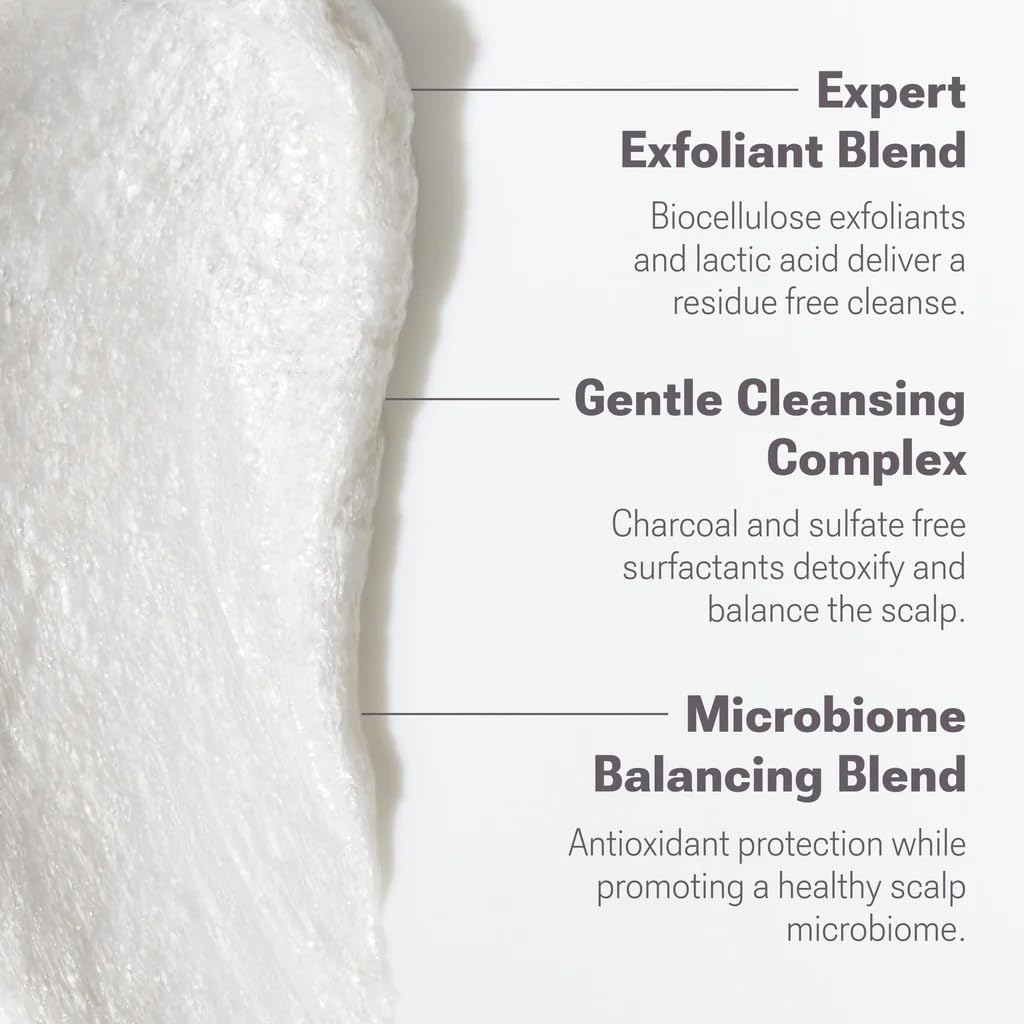 - Cleanse & Prep - A detoxifying charcoal blend cleanses without stripping natural oils, while cellulose acetate and lactic acid gently lift flakes and buildup without leaving residue behind. The result? A healthy, ideal base for your favorite shampoo and scalp treatments.