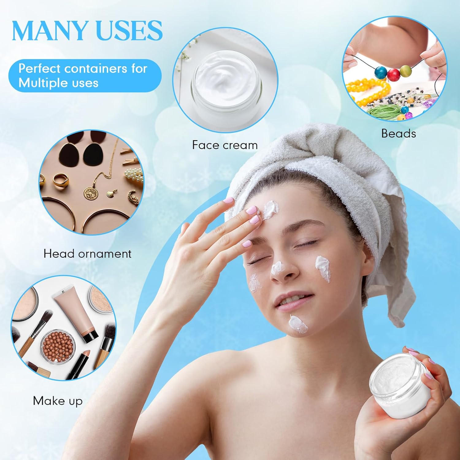- Multifunctional Containers: you can use these plastic jar containers with lids to store your personal beauty products for travel, ideal to dispense; You can also use it to store homemade sugar scrub cream, body lotions, bath butter soap gifts, body butters and hair moisturizers, small and easily lost jewelry, small crafts like beads, seasonings, acrylic paints, flower seeds, rhinestones etc., which will keep your things organized and make your life more convenient