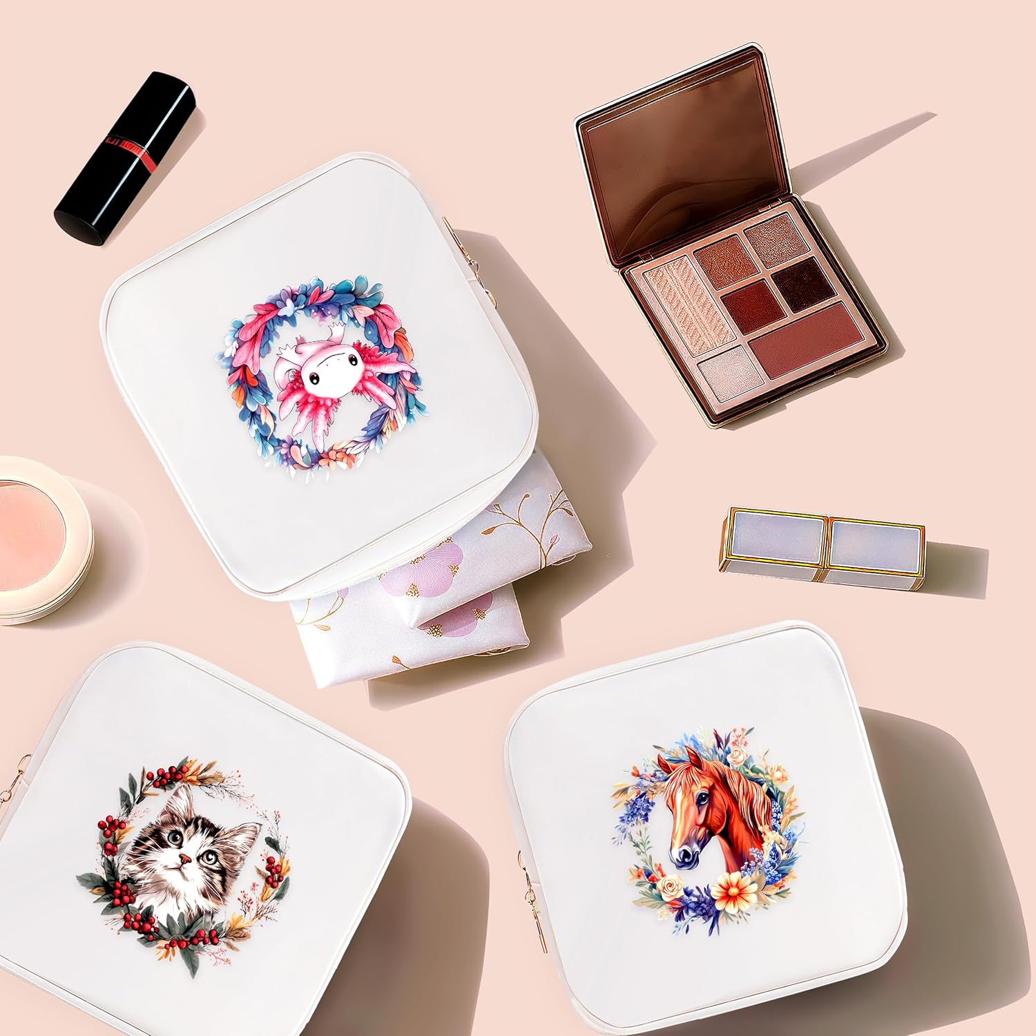 - Small cosmetic bag are great for storing daily small items such as lipstick, cushion cream, blush, earphones and jewelry; the portable makeup bag will be convenient for you to touch up your makeup anytime