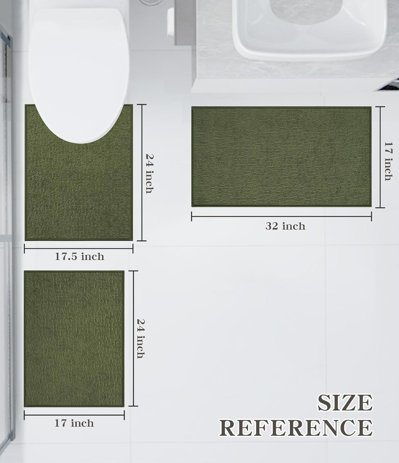 chakme Bathroom Rug Sets 3 Piece, Ultra Thin Bath Mat Quick Dry Bath Mat Set, Absorbent Bath Mat for Bathroom Non Slip Machine Washable, (Dark Green, 3 Piece)
