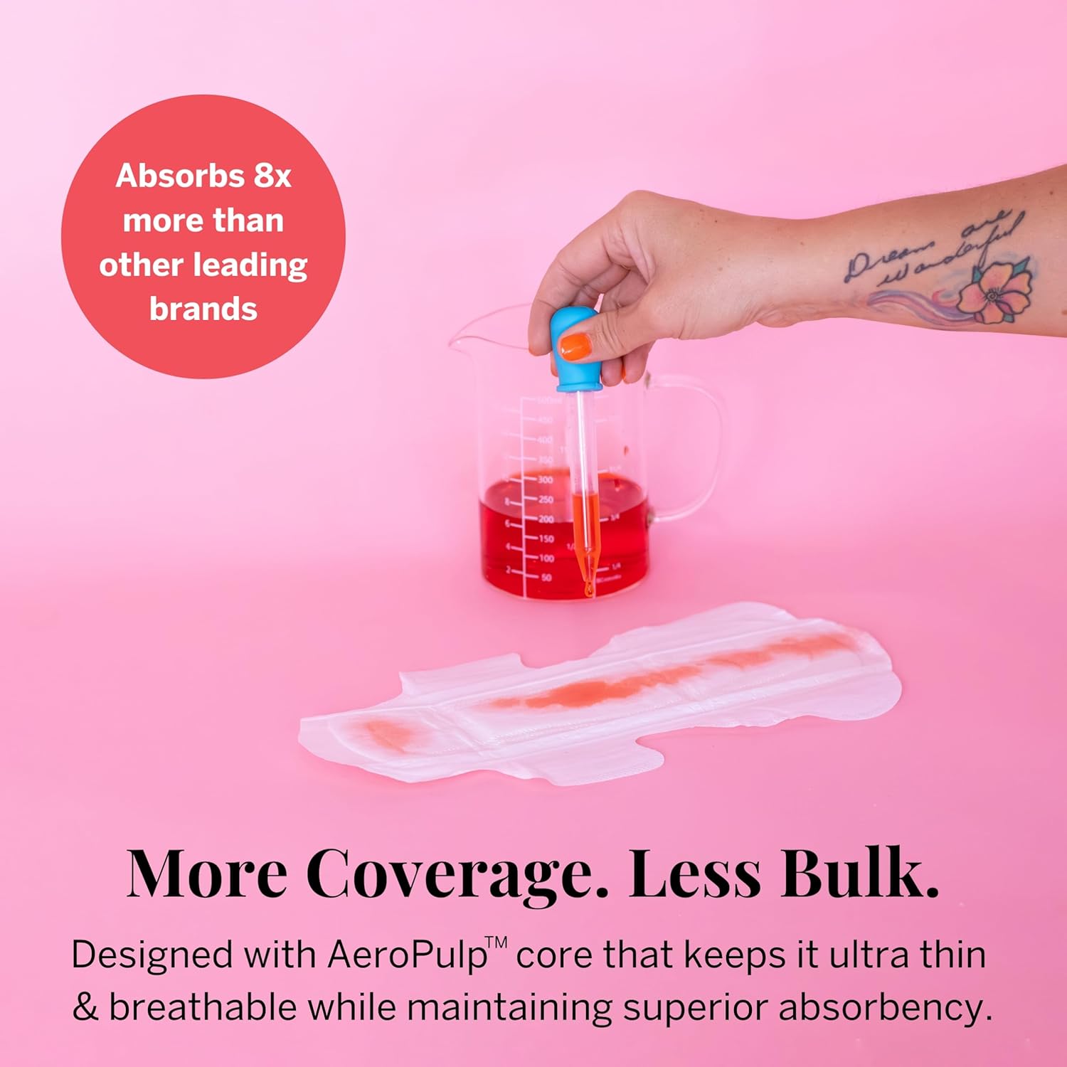 - INCREDIBLE ABSORBENCY. These multilayer pads absorb 200 mL giving you all night overflow protection, locking moisture deep in the core.