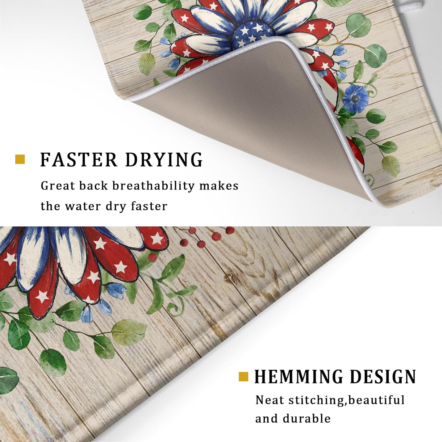 - 【Protect Tableware】Place your dishes on it or under dish racks, the 4th of July dish mat prevents bowls, glassware, and more tablewares from being scratched or worn, can be used as dish drying mat, sink mat, dishes drainer mats to keep the countertop dry and tidy.