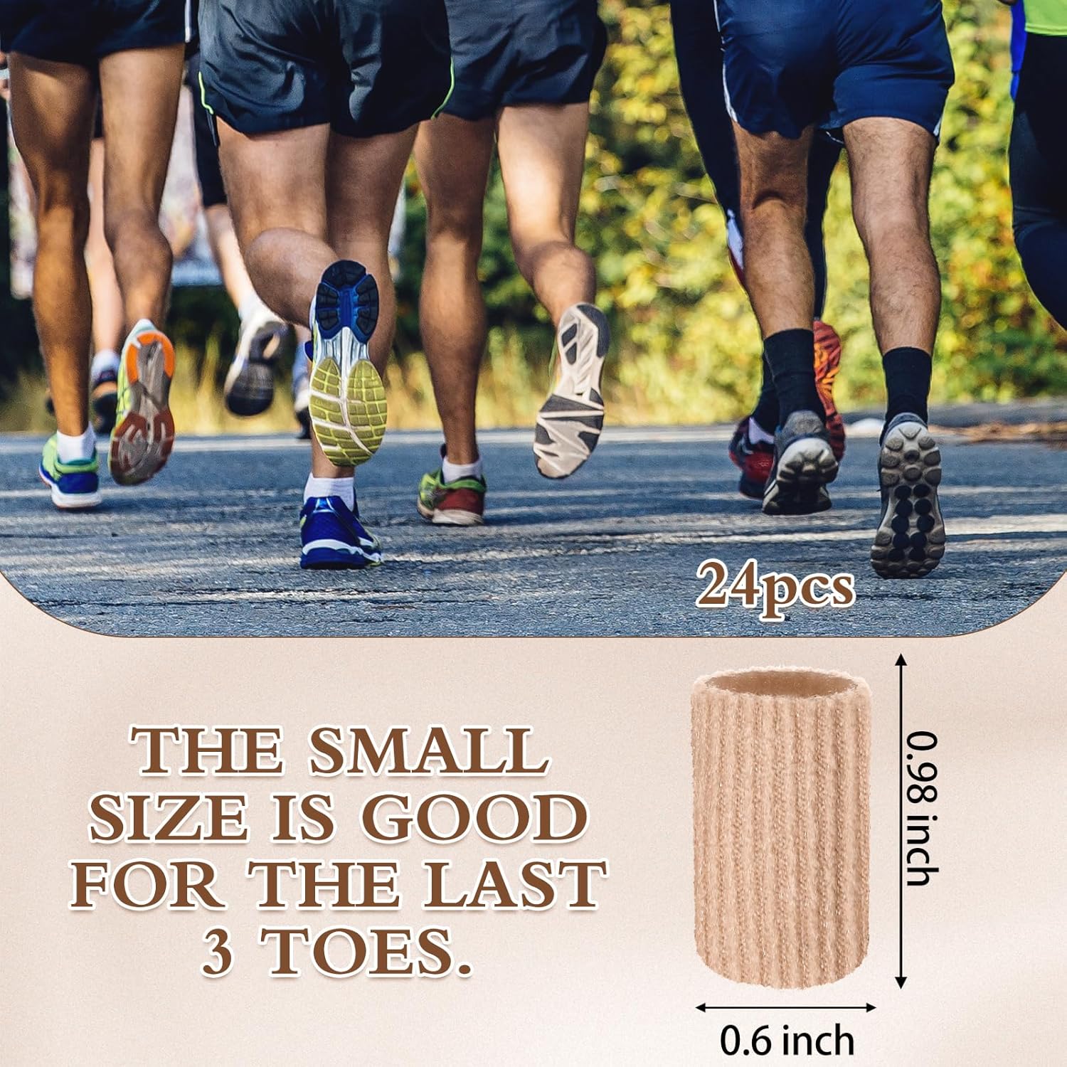 Blulu 24 Pieces Toe Tubes 0.98 Inches Cushion Tube Corn Pads for Toes Sleeves Soft Gel Protectors for Cushions Corns Blisters Calluses 3 Size(Skin Color,Small Size)