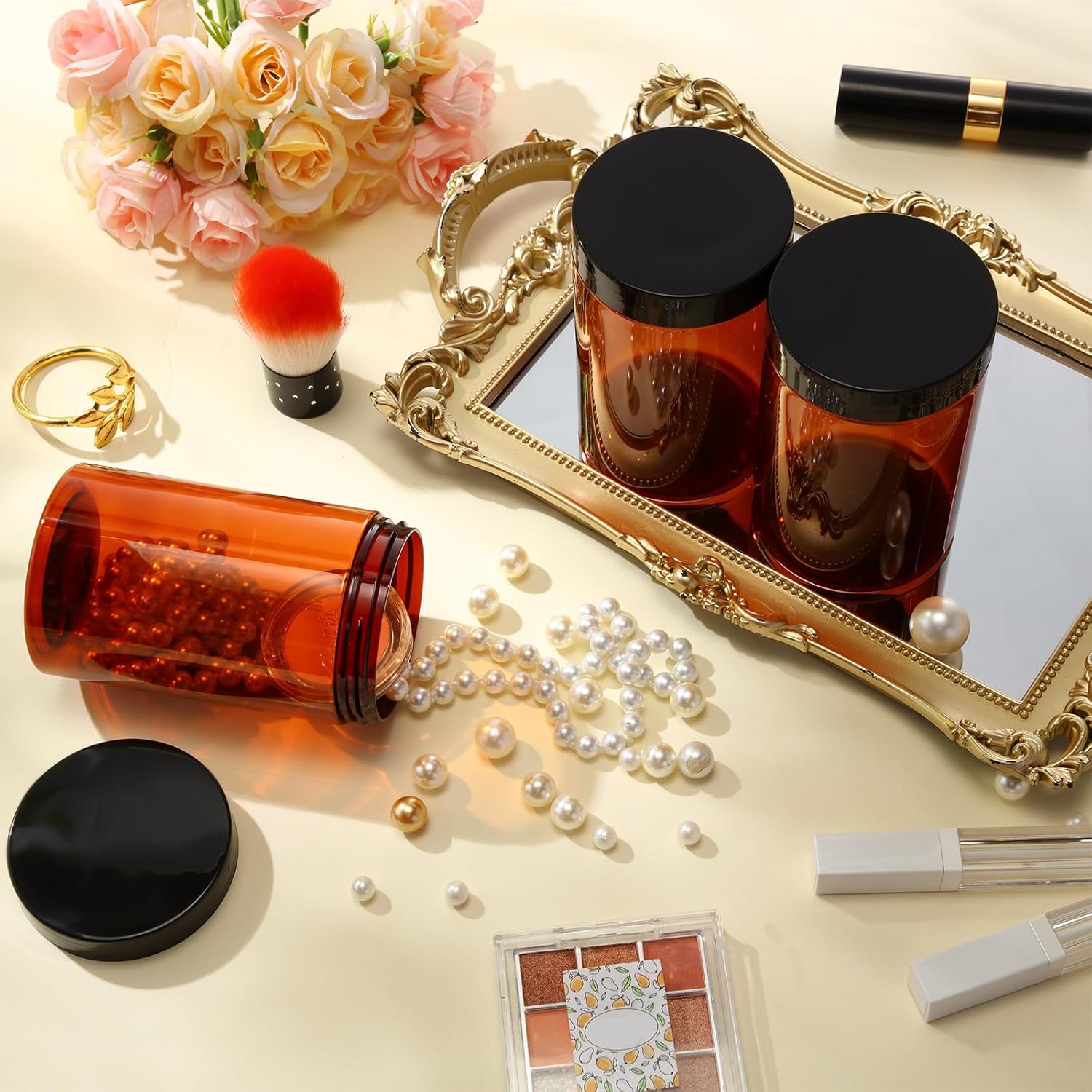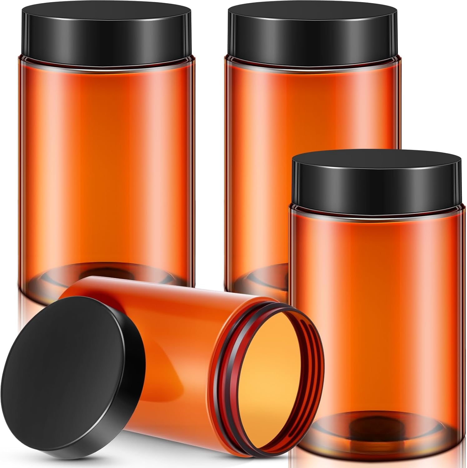 SATINIOR 24 Pieces Empty Clear Plastic Jars with Lids Round Storage Containers Wide Mouth for Beauty Product Cosmetic Cream Lotion Liquid Butter Craft and Food(Amber Lid,12 oz)