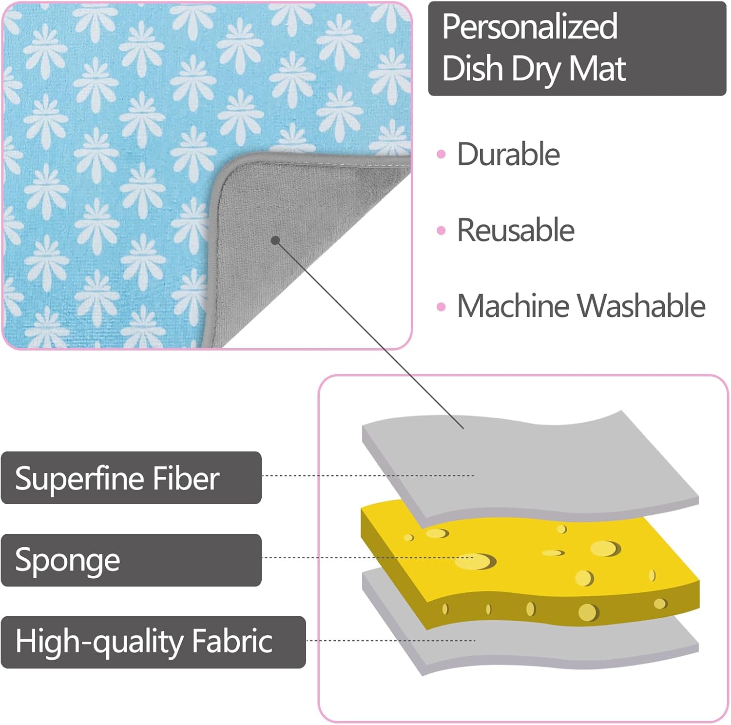- 🌈 DURABLE: This drying mat for kitchen counter won’t fade , pill deform or be smelly after long time use compared with the cloth drying pad. Amazing water absorption and quick drying make it difficult for harmful and pathogenic substances to breed