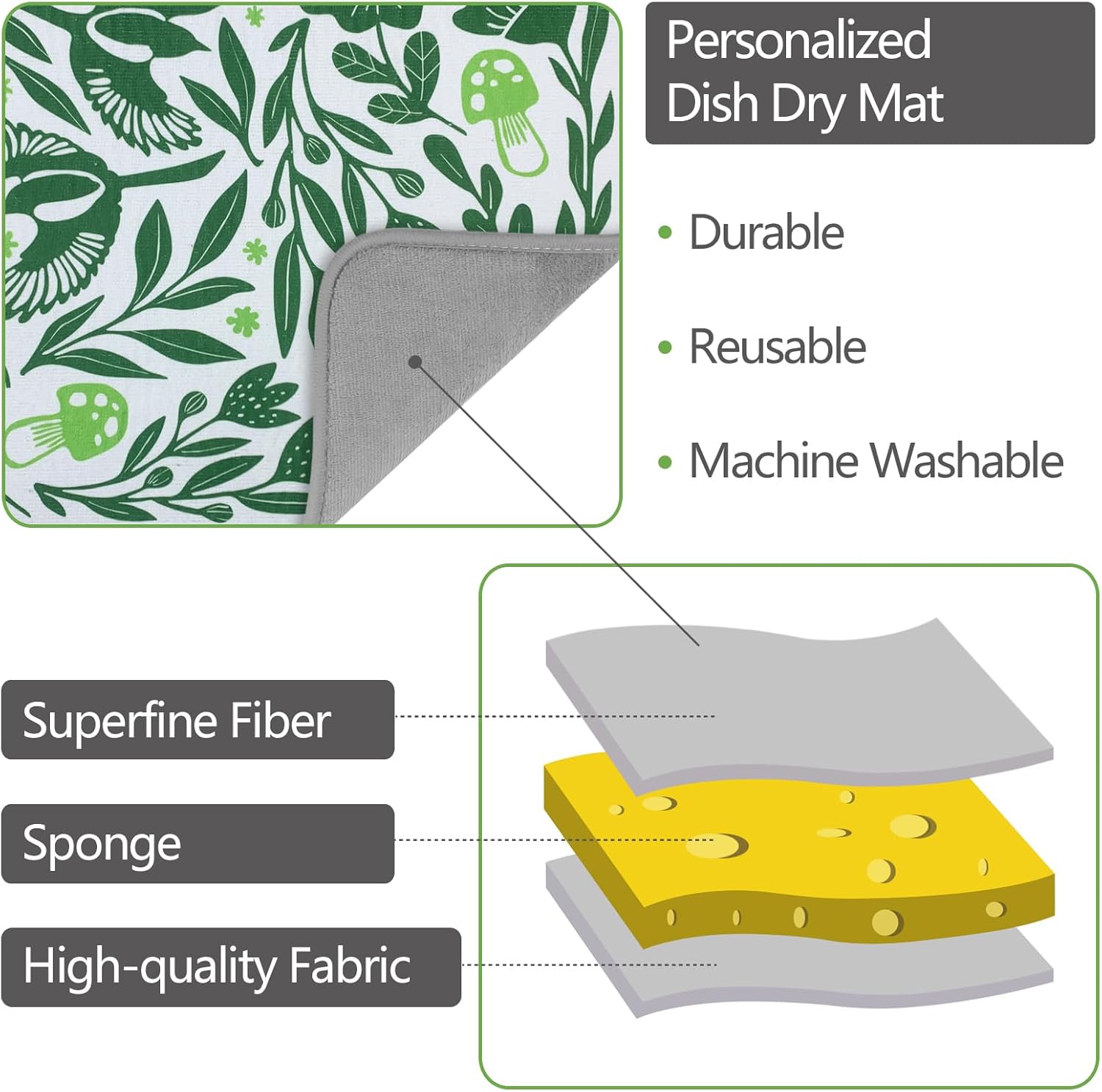 - 🌈 CREATIVITY AND STRONG ABSORPTION: can't stand wet dishes and dry mats? Buy one of our dish mat drying kitchen mat. microfiber dish drying mat, the surface can quickly absorb water 2-4 times its own weight. Help your crockery and tableware dry faster and more hygienically, and keep the table completely dry