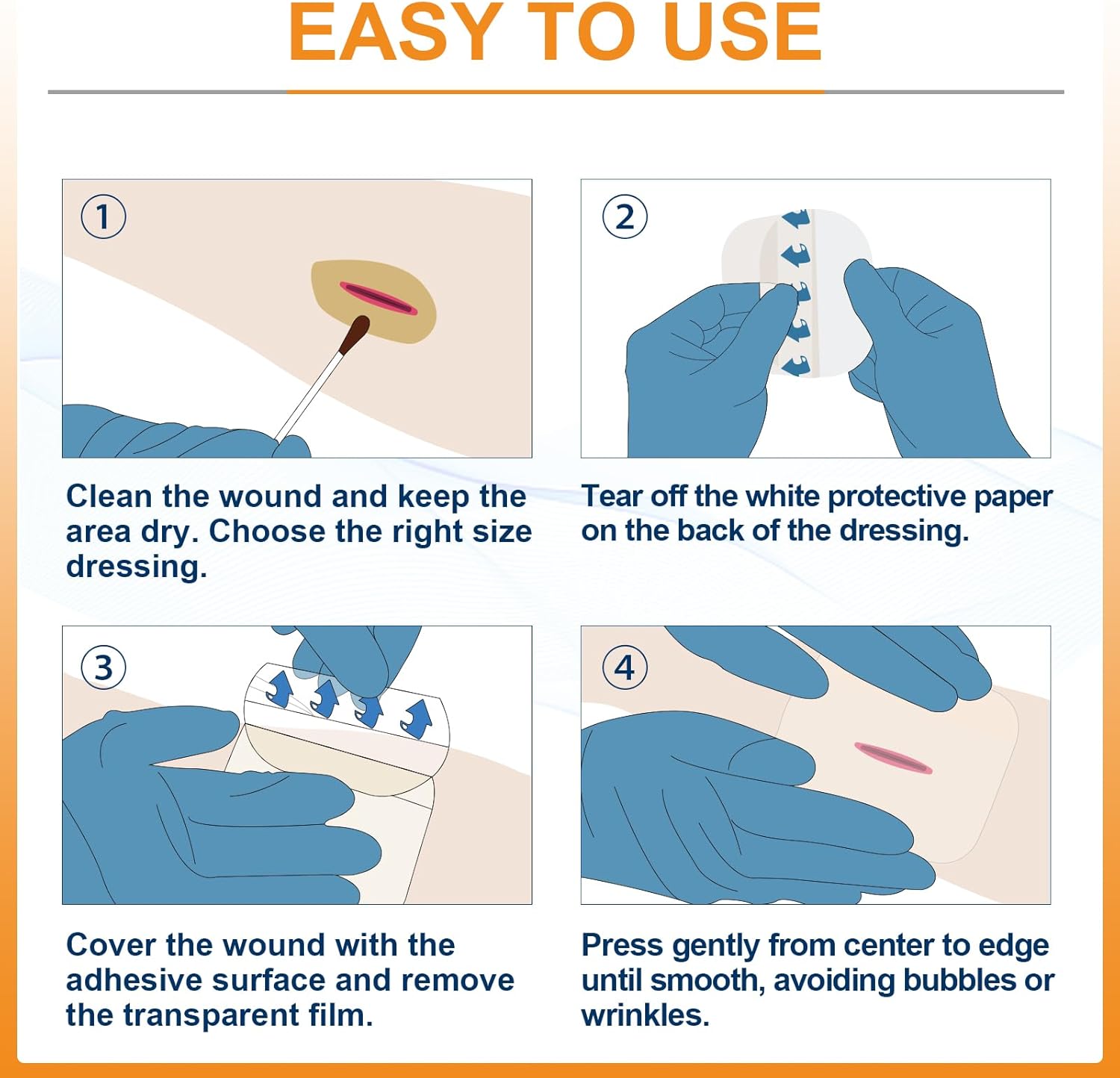 - Highly Absorbent & Self-Adhesive: Hydrocolloid bandages adopts self-adhesive design, which adheres to the skin gently, is soft and comfortable, and reduces the damage during replacement. By absorbing wound secretions and converting them into gel, the wound is kept moist and the wound is reduced from external contamination.