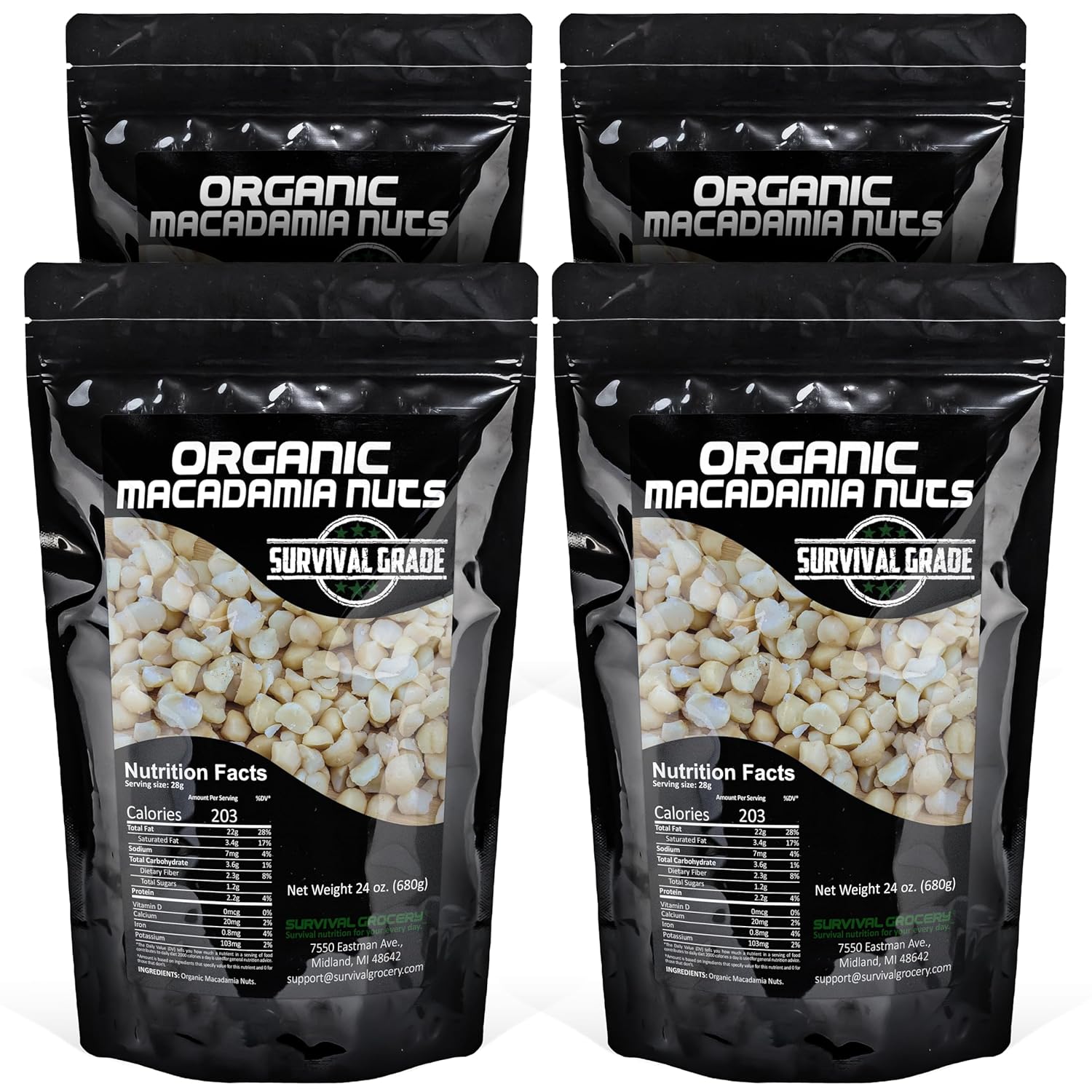 Survival Grocery® Organic Macadamia Nuts – Keto-Friendly Healthy Fats & Plant Protein, Oxygen- & Light-Barrier Packaging + O₂ & Moisture Packs, (Single or Multi-Pack Savings) (96 oz./4 Bags)