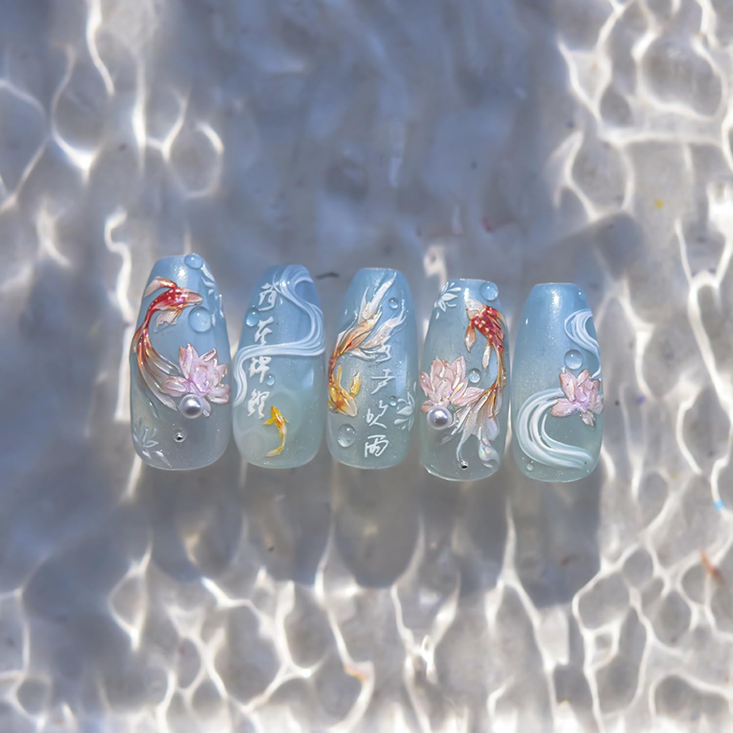 • Package: You will get 1 sheet 5d koi fish nail stickers for acrylic nails supply, many cute koi fish pattern for you to choose, cute lotus nail designs, and satisfy your rich imagination of nail DIY.