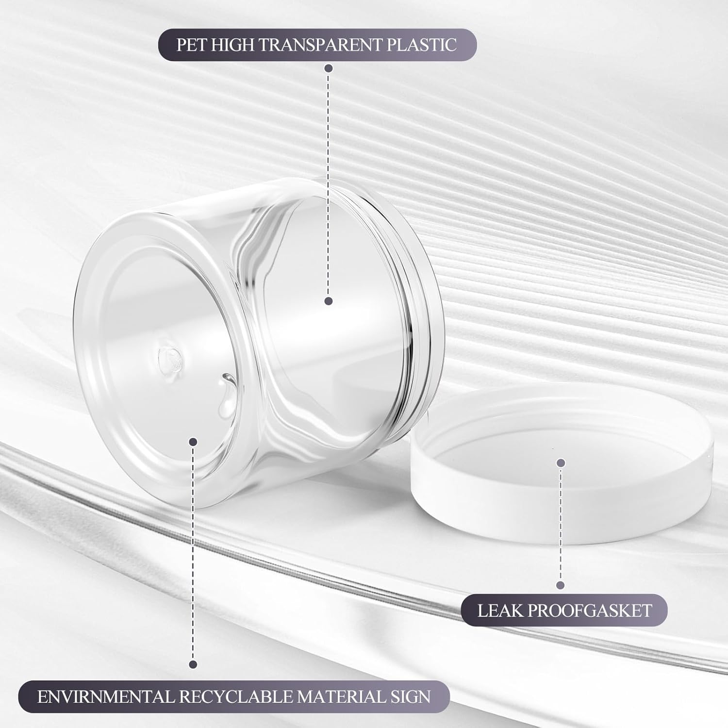 - Quality Material: the plastic jars with lids are made of quality plastic, without odd smell, does not contaminate your skincare products, stable, high temperature resistance, sealed storage and leak proof