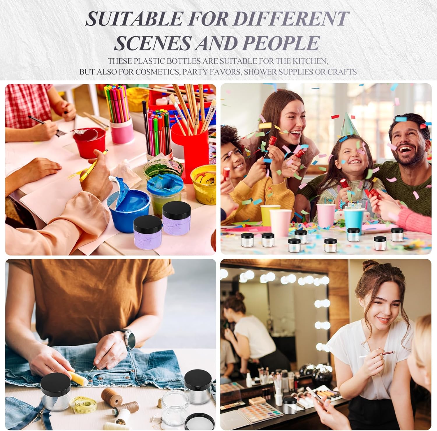 - Quality Material: the plastic jars with lids are made of quality plastic, without odd smell, does not contaminate your skincare products, stable, high temperature resistance, sealed storage and leak proof