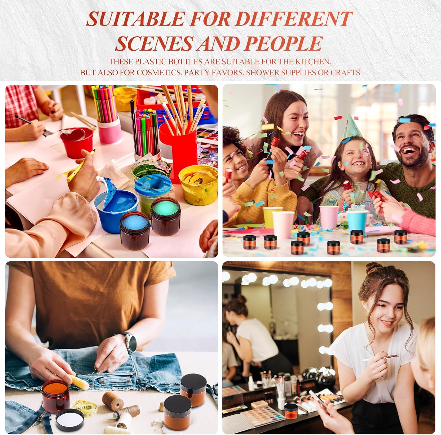 - Multi-functional Container: good way to store your homemade cosmetic, body lotion, moisturizers, face masks, specimen collection, putty, lotions, fragrances, DIY, party favors, or other crafts, good tools in daily life