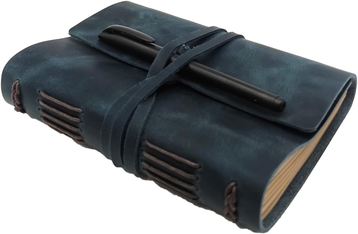 - BEST GENUINE LEATHER JOURNAL CRAFTSMANSHIP – Crafted with genuine leather, this leather bound journal offers a soft touch exterior with natural, distressed look that’s truly exclusive blue notebook journal