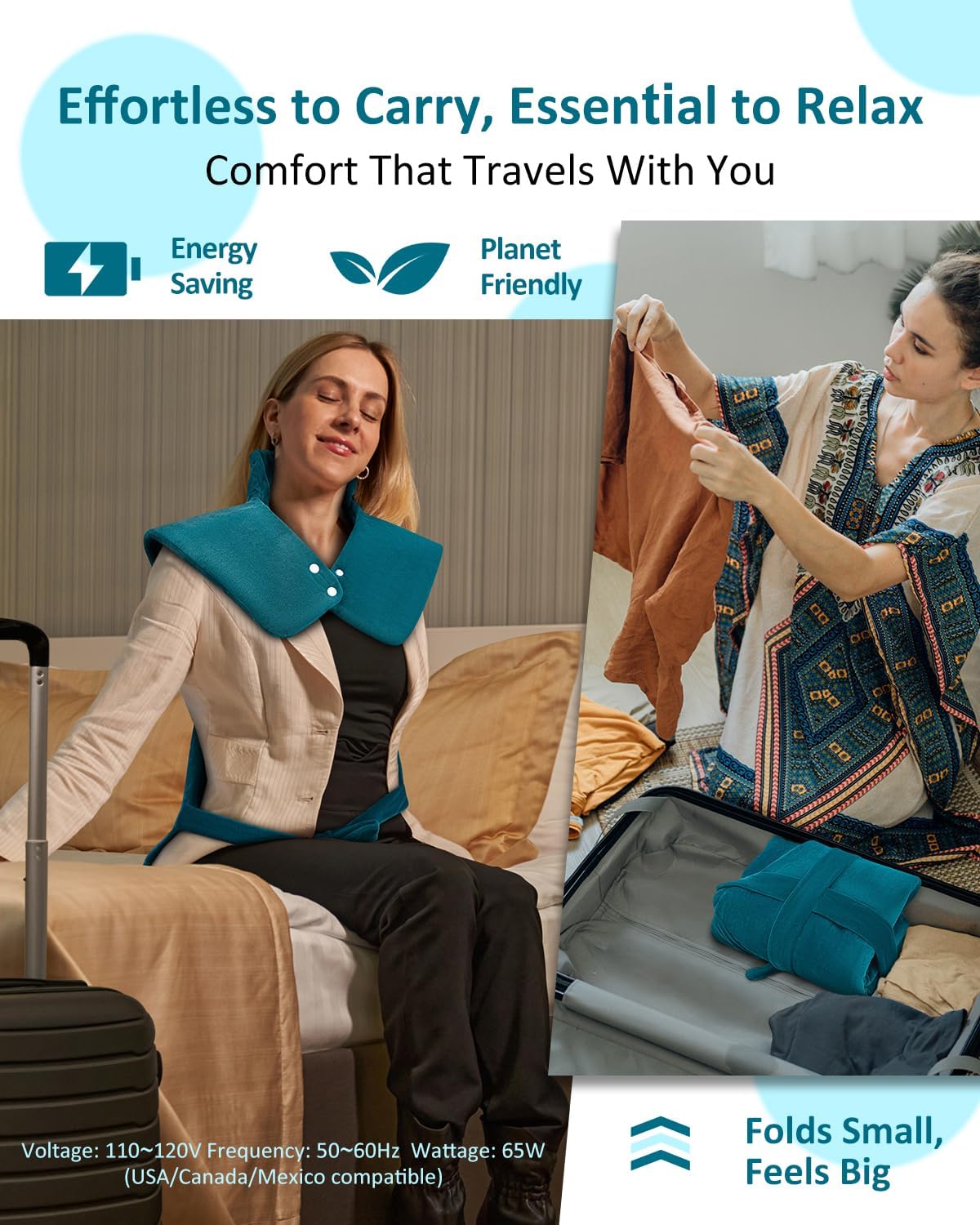 - Lightweight Design & Convenient Warmth: Made from soft and flexible materials, this heating pad folds easily and packs into your travel bag, perfect for bringing along on business trips or weekend getaways, and won't weigh you down. Enjoy comforting warmth when you arrive at your destination. Whether you're reading books on a couch, watching your favorite shows on the sofa, or enjoying a peaceful moment before bed, it offers gentle warmth and cozy relief to help you relax after a busy day.