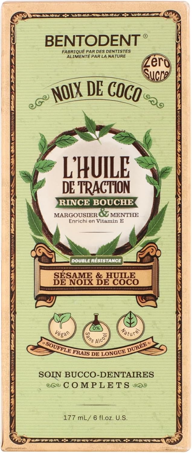 - Bentodent Oil Pulling NATURAL & SIMPLE INGREDIENTS: Contains coconut oil and sesame oil combined with Neem and mint for a refreshing oral care experience Ingredient list : Coconut oil, Sesame Oil, Neem, Peppermint flavour, Vitami E