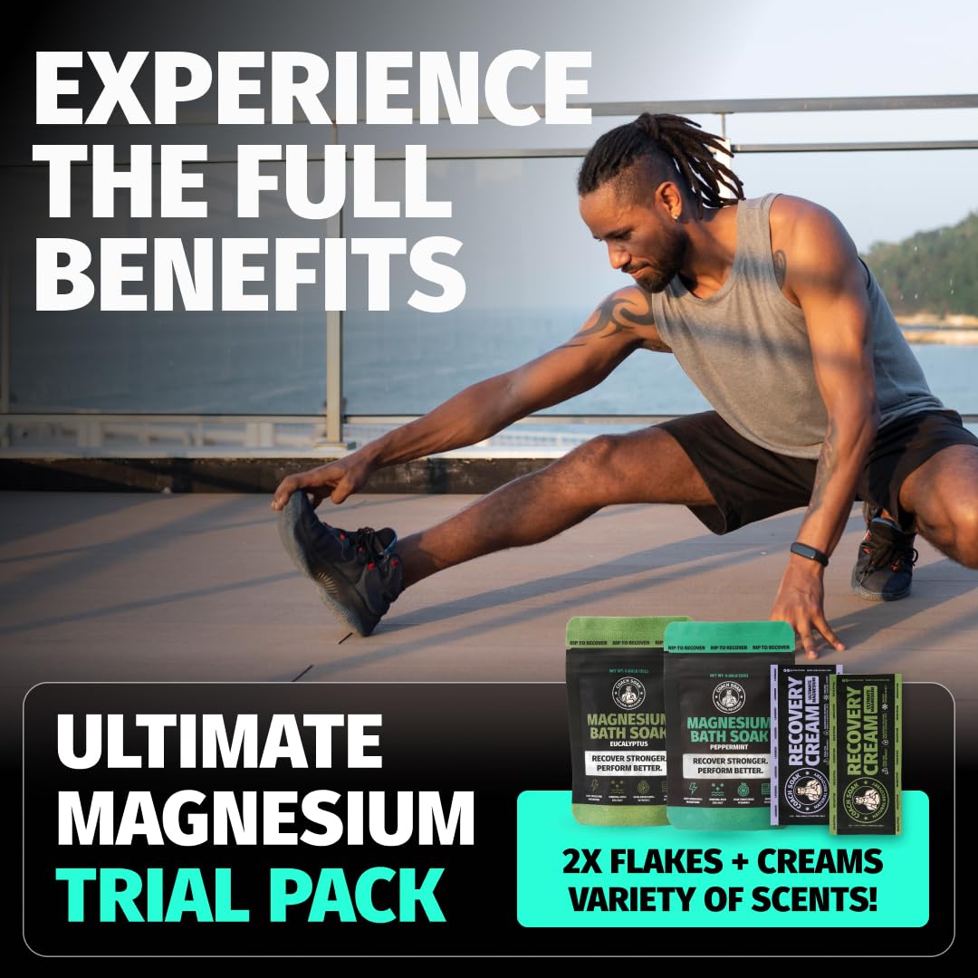 - Rejuvenating Coach Soak: Experience the invigorating benefits of Coach Soak's Magnesium Bath Flakes & Lotion Trial Pack, designed to support athletic recovery. Infused with magnesium flakes and menthol, it revitalizes and refreshes after intense workouts