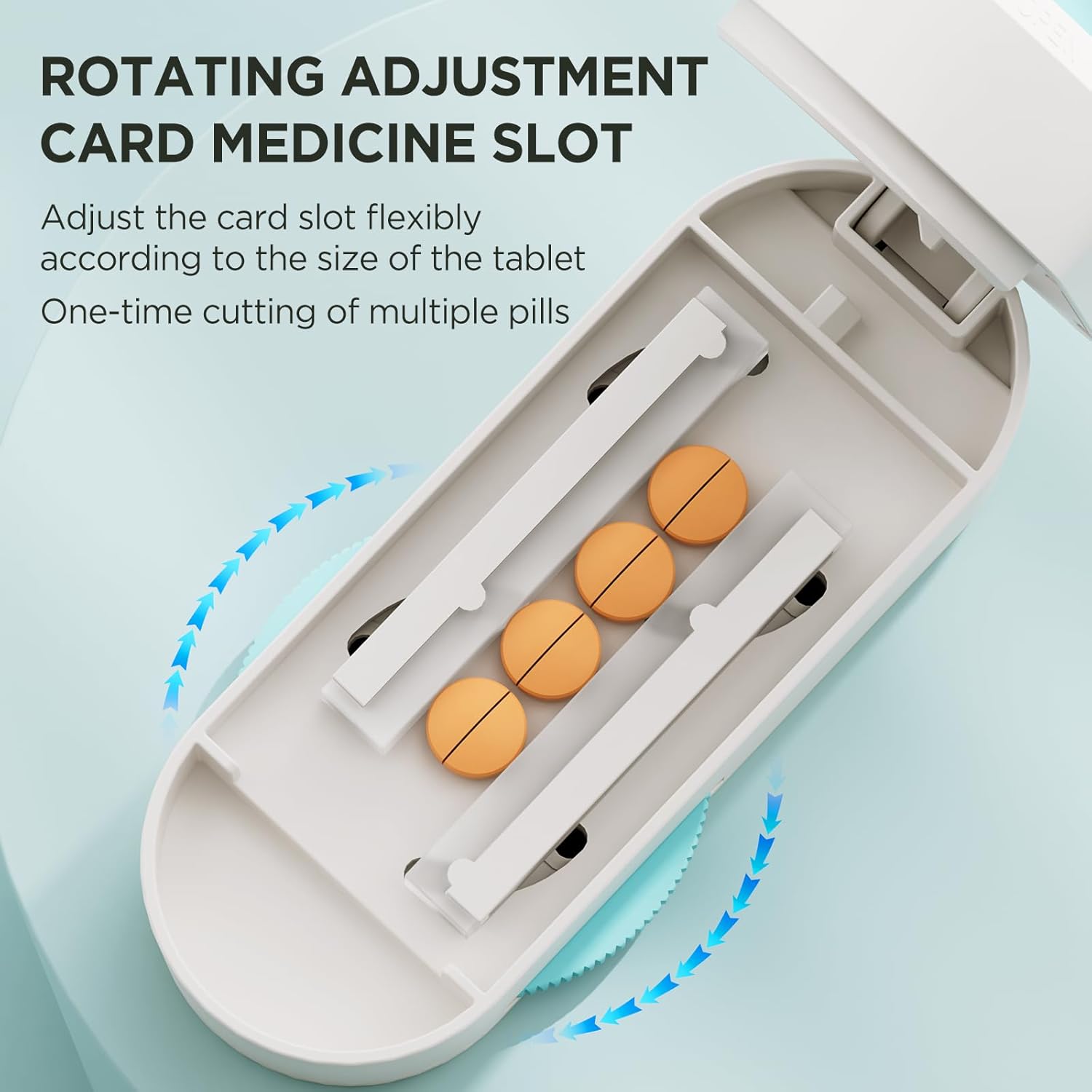 - 【Accurate Cutting For Pills of Any Size】There are 2 adjustable bars of this pill splitter that can safely accommodate pills of any size, round, rectangular or oval. This pill cutter splitter for small and tiny pills can cut pills with a width of 2mm-15mm, so it can easily cut tiny pills of 2.5mg