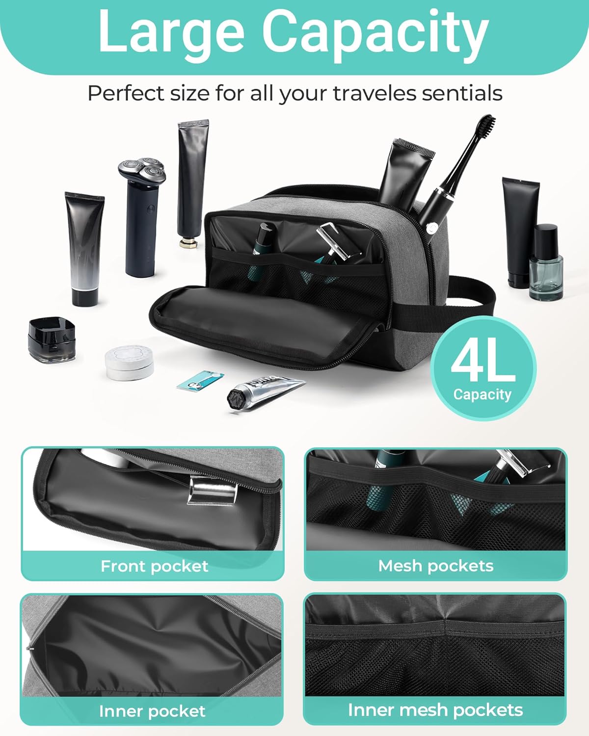 Elviros Travel Toiletry Bag for Men Hanging Dopp Kit Shaving Bag Toiletries Organizer Small Toiletry Bag for Traveling (Denim Grey)