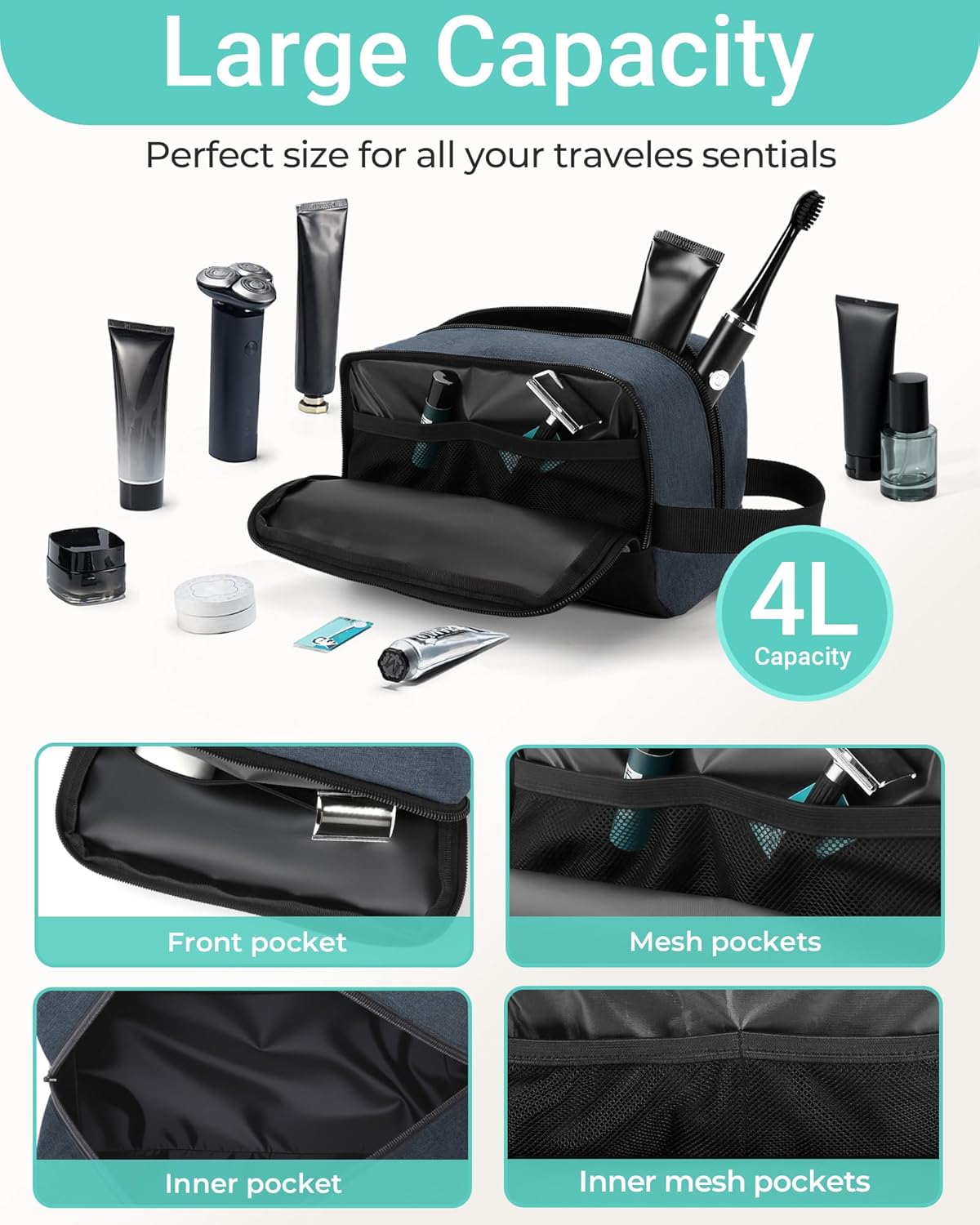 Elviros Travel Toiletry Bag for Men Hanging Dopp Kit Shaving Bag Toiletries Organizer Small Tool Medicine Hygiene Bag for Traveling Pouch (Navy Blue)