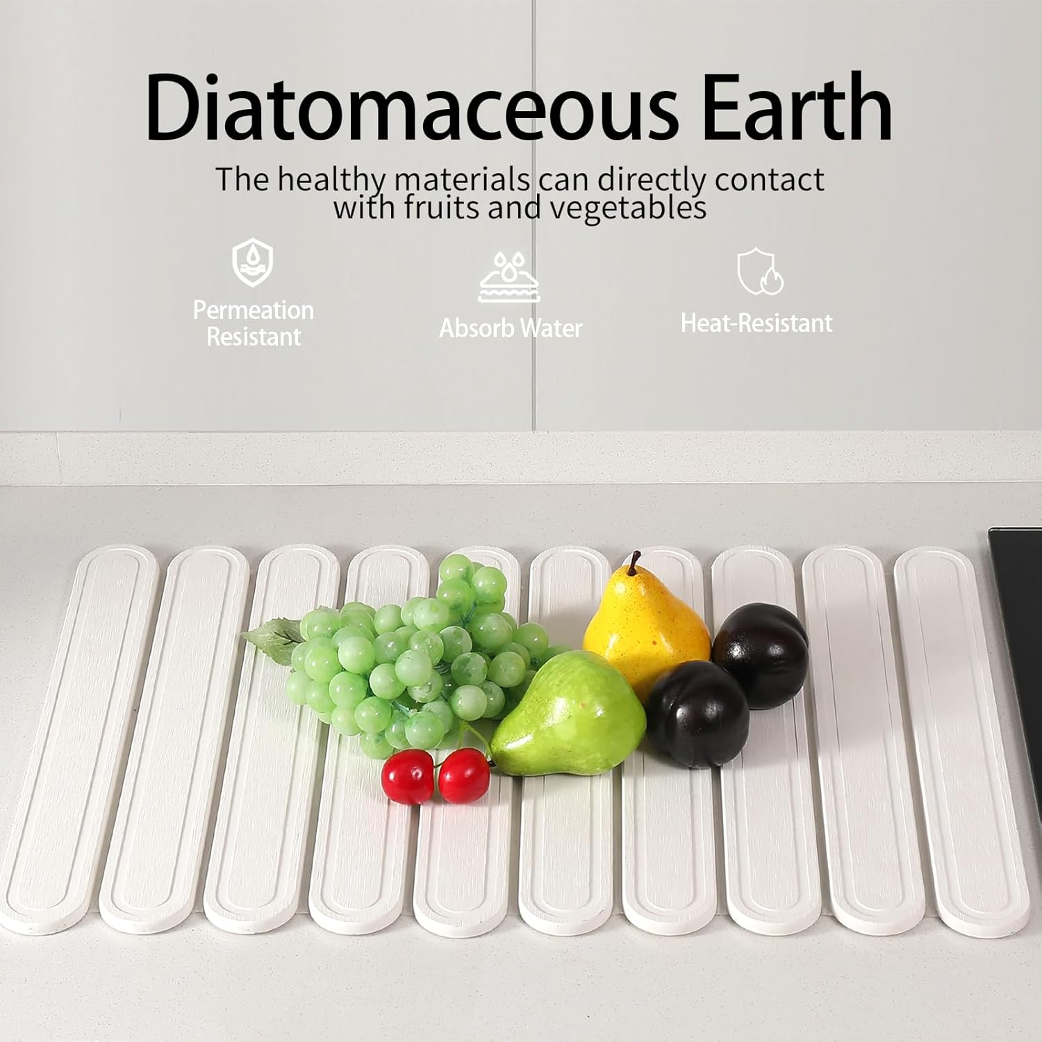 Stone Dish Drying Mat for Kitchen Counter, Quick Dry Stone Mat Kitchen for Dishes Bottles Cups, Large Foldable Diatomaceous Earth Dish Drying Mats Match Any Countertop, White