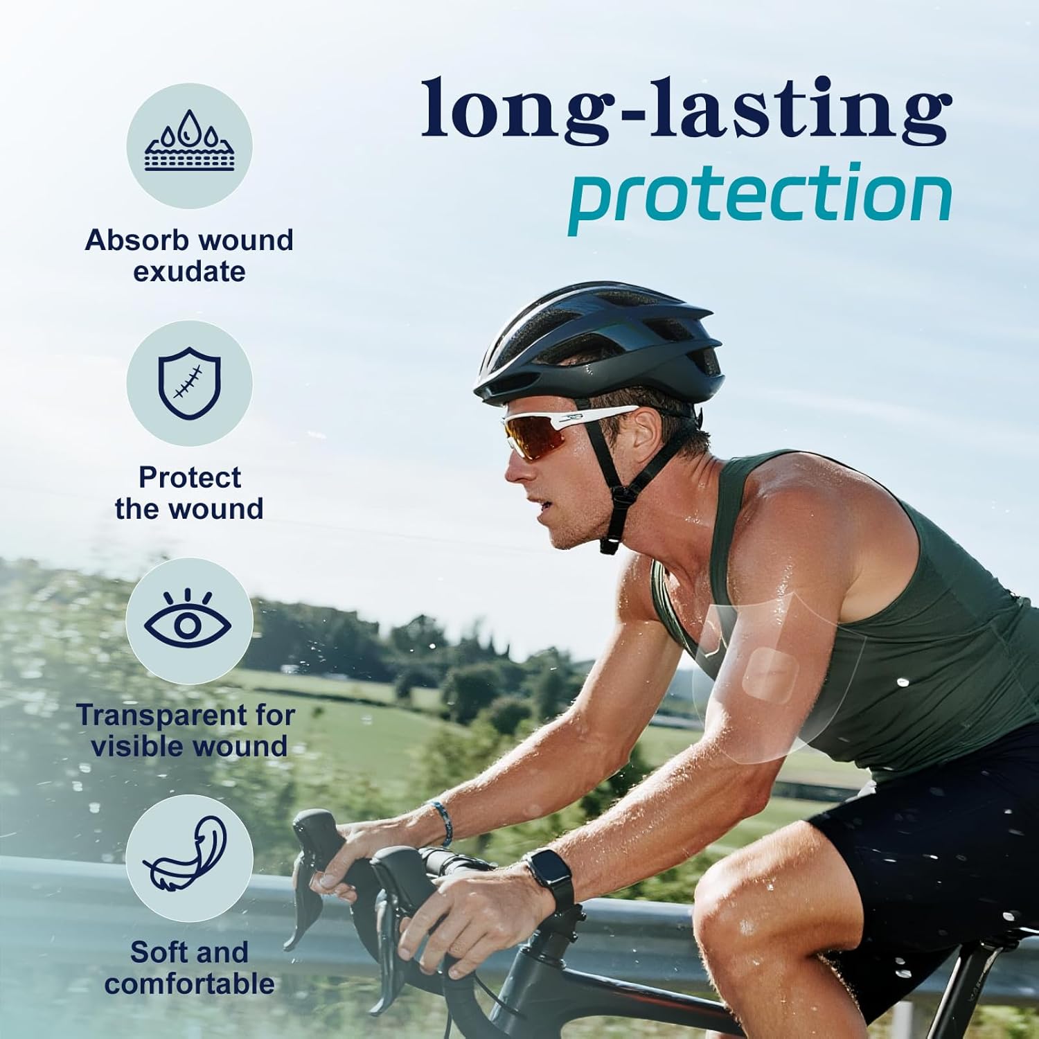 - [Transparent, Ultra-thin and Flexible] The soft hydrocolloid bandage is only 0.3mm thick making it easier to conform to complex body contours such as elbows, knees and ankles. Semi-transparent for better visibility of the wound