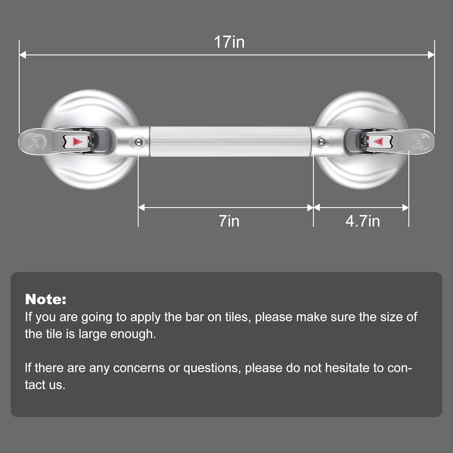 17-Inch Shower Handle - Upgraded Grab Bar with Strong Suction Cups for Bathtub & Shower Safety, Ideal for Seniors, Elderly, Disabled -Silver