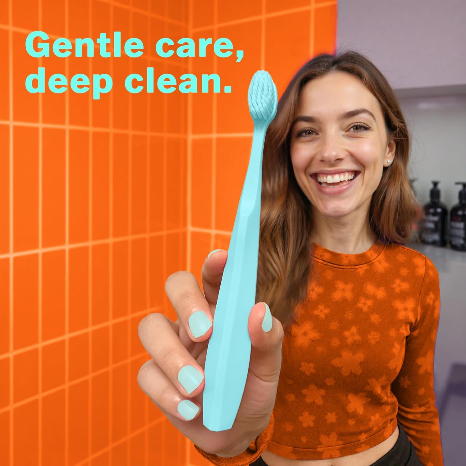 - Stylish and Functional Design Soft pastel tones meet practical function. This toothbrush is designed for adults, teens, and anyone looking for a gentle toothbrush for bleeding or sensitive gums.